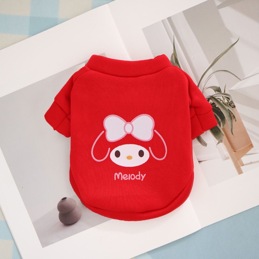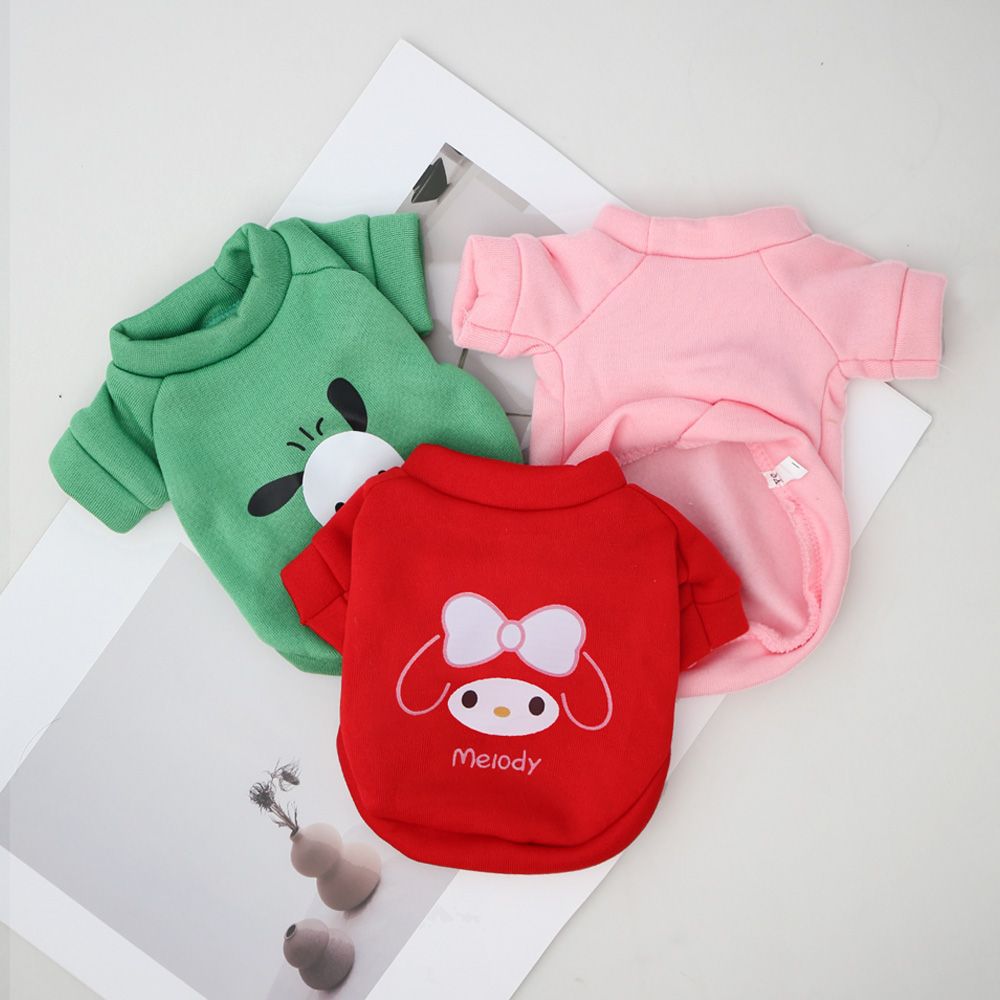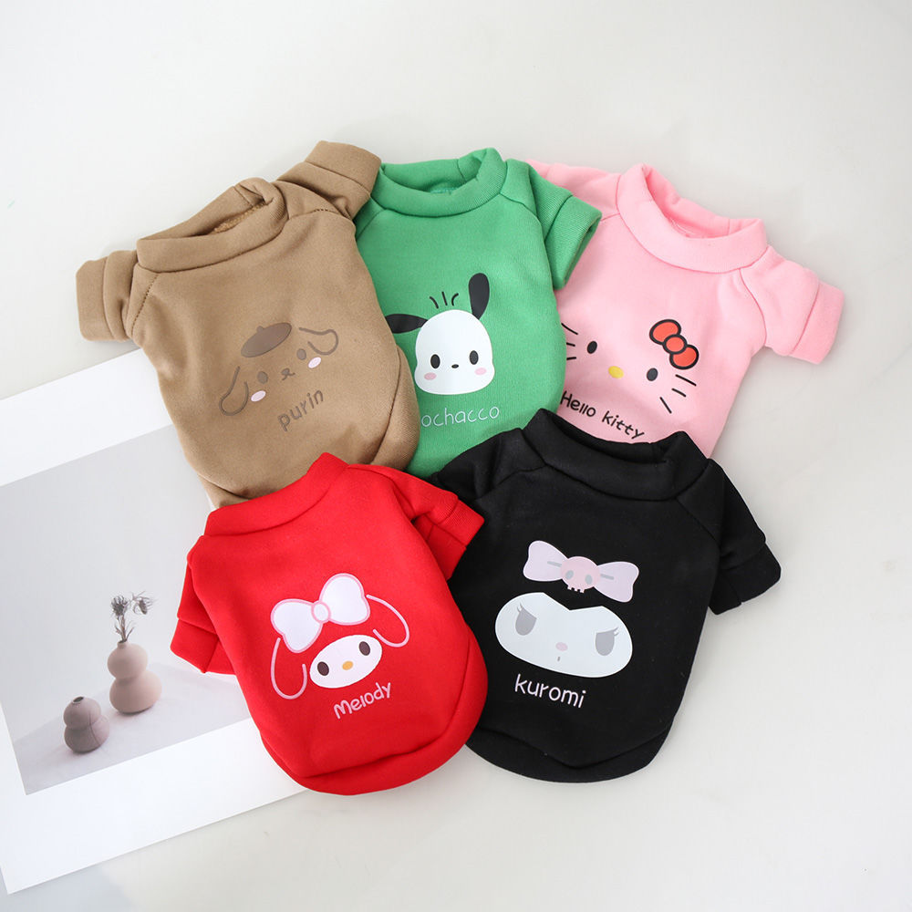 가을과 겨울 고양이 개 옷 귀여운 만화 산리오 인쇄 기모 스웨트 셔츠 따뜻한 슈퍼 귀여운 애완 동물 옷