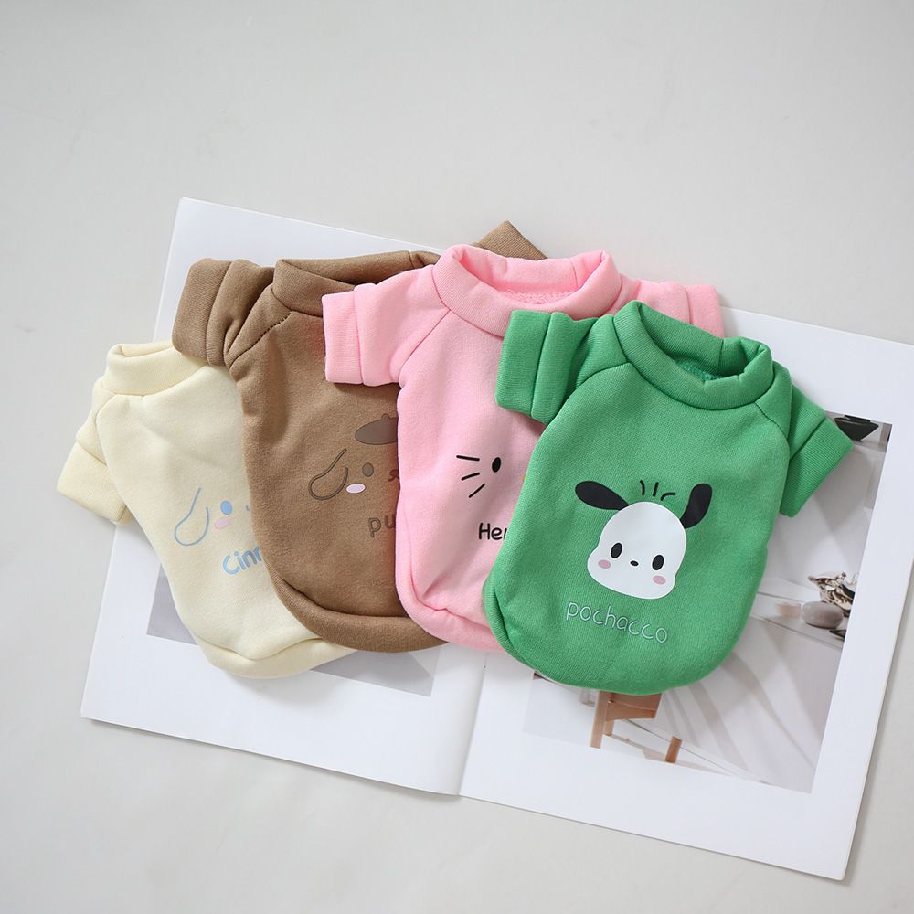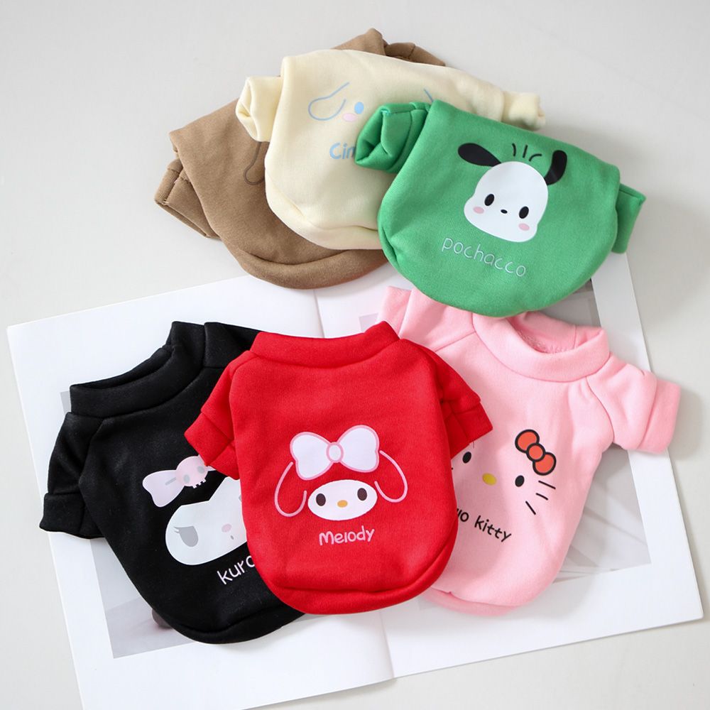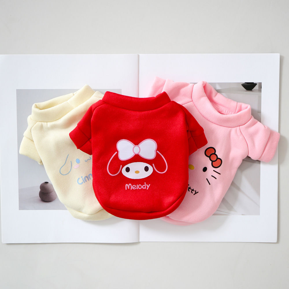 가을과 겨울 고양이 개 옷 귀여운 만화 산리오 인쇄 기모 스웨트 셔츠 따뜻한 슈퍼 귀여운 애완 동물 옷스토어 가기