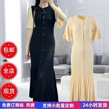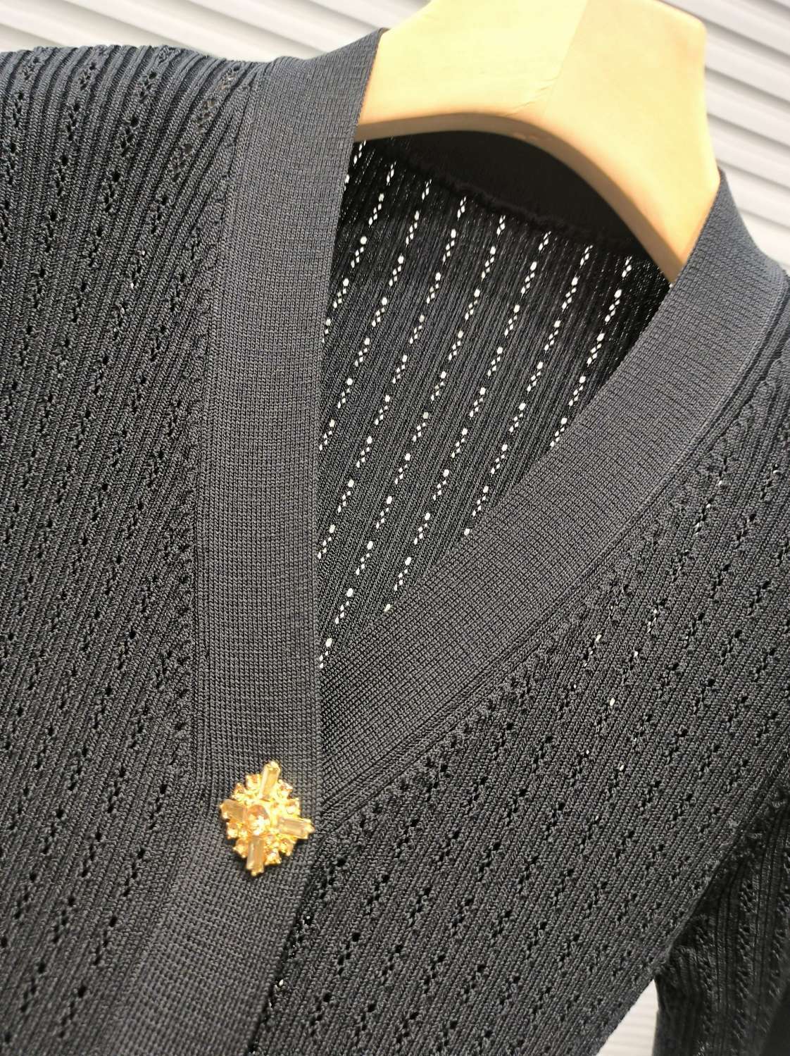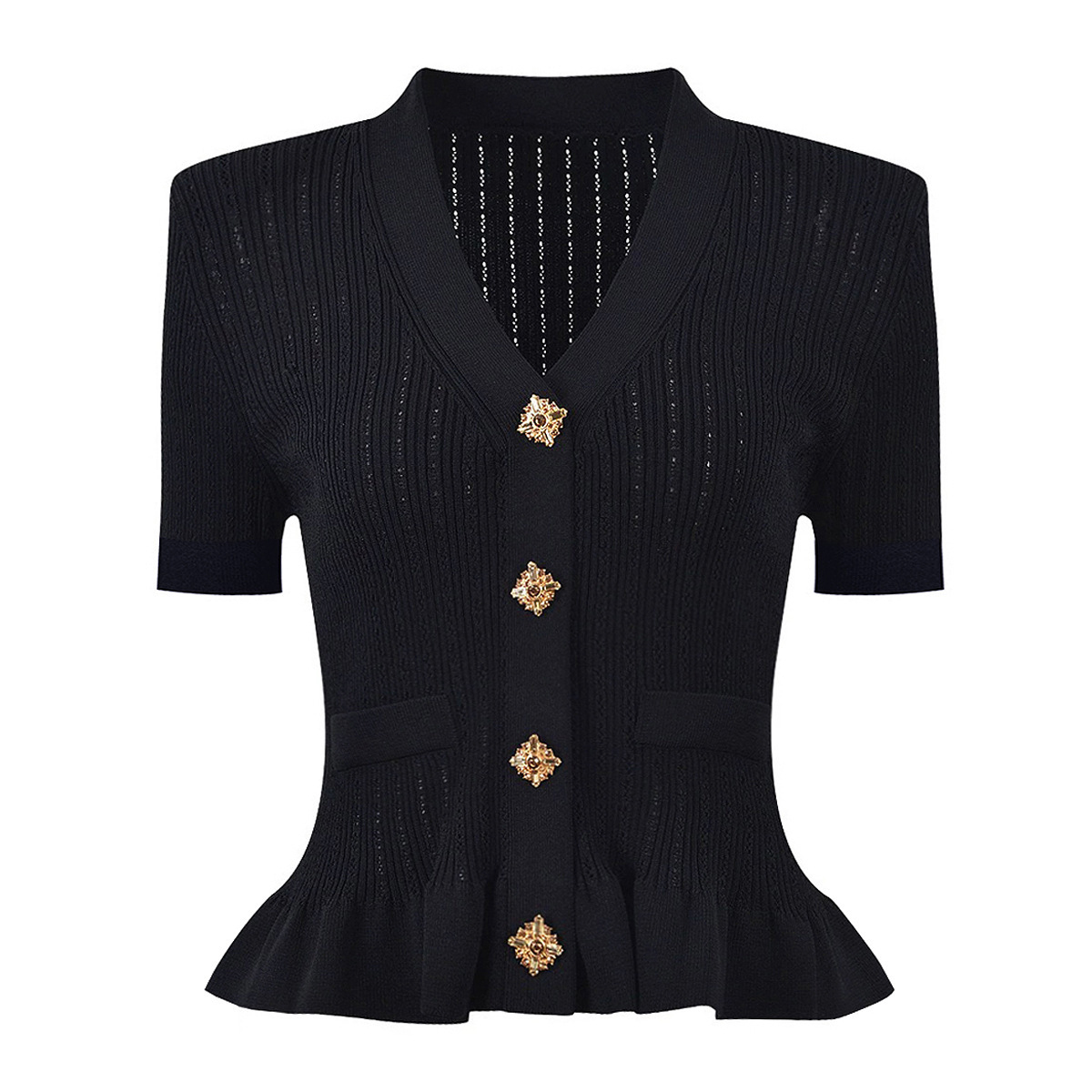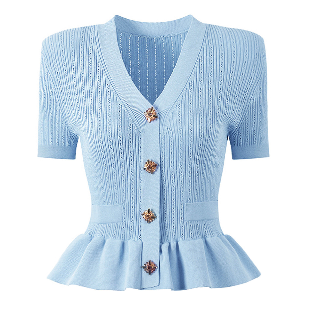 여성용 프렌치 스타일 투피스 세트, 허리를 잘록하게 잡아주는 V넥 니트 탑과 러플 밑단이 있는 힙을 감싸는 스커트 세트