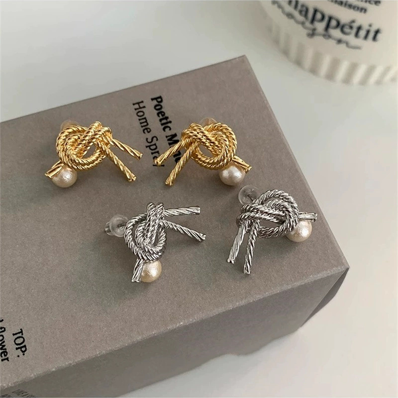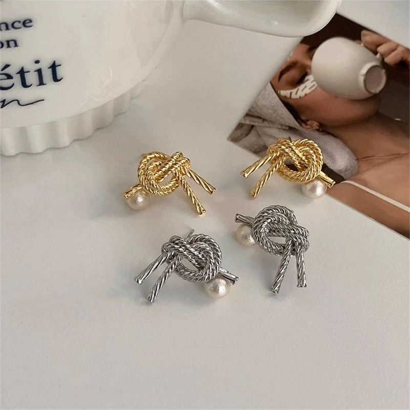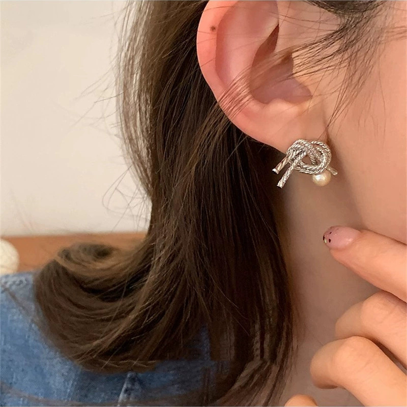 • 실버 트위스트 진주 스터드 귀걸이 R5226B