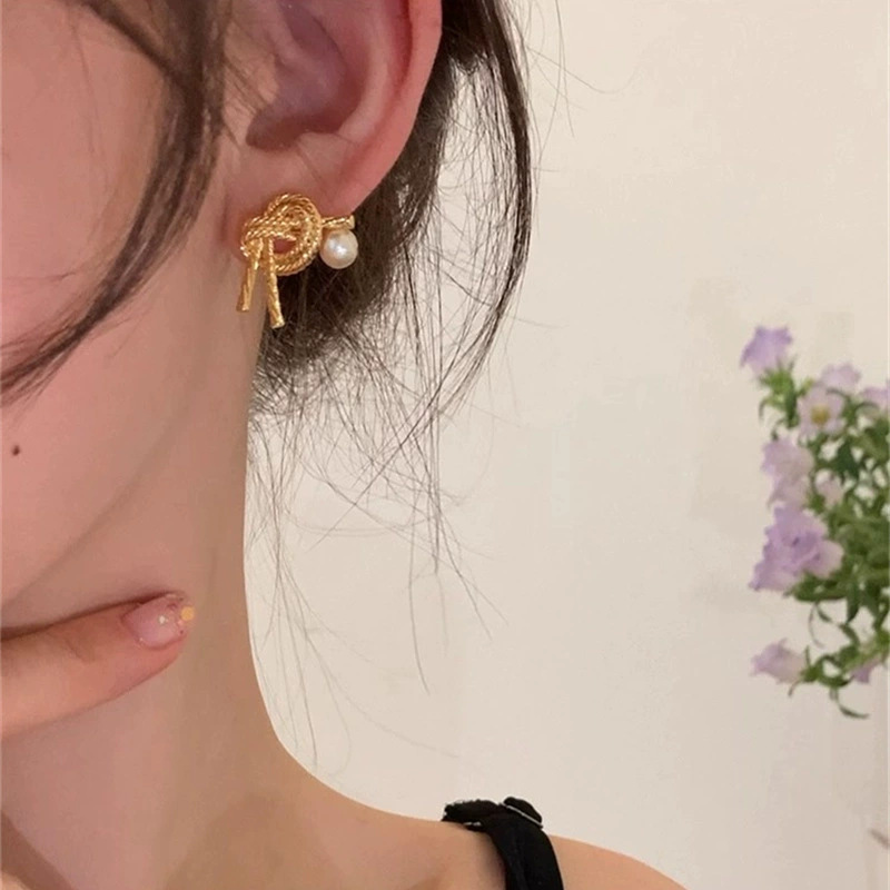 • 골드 트위스트 진주 스터드 귀걸이 R5226A