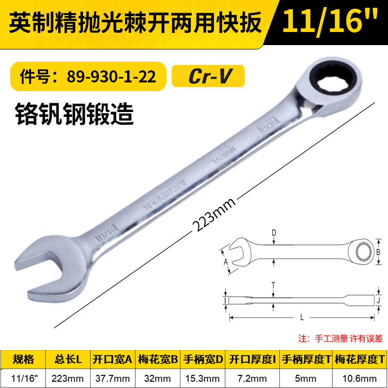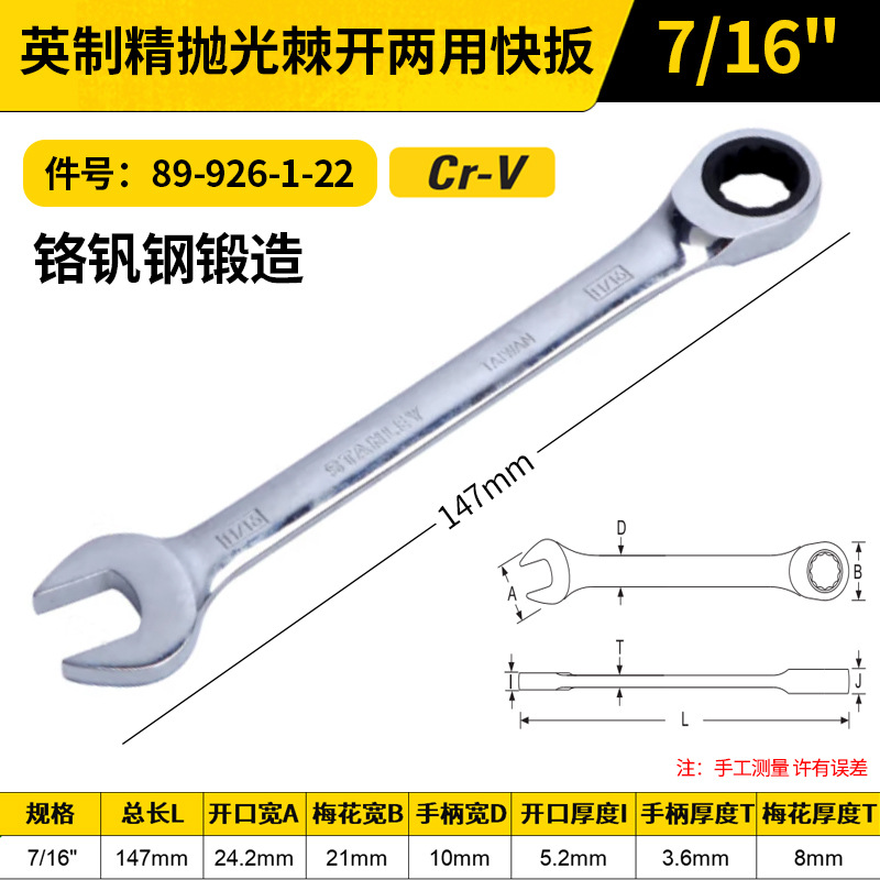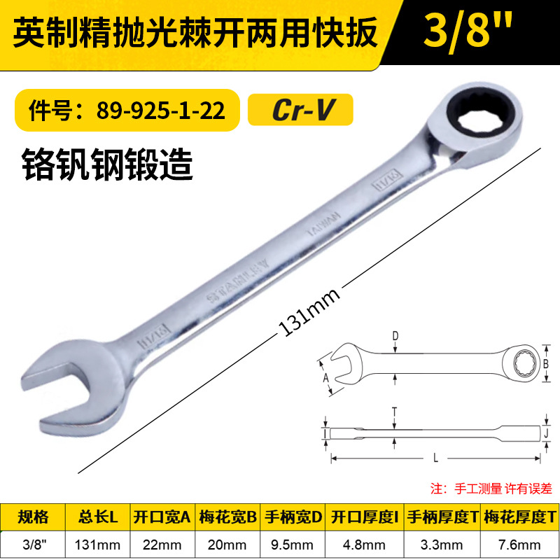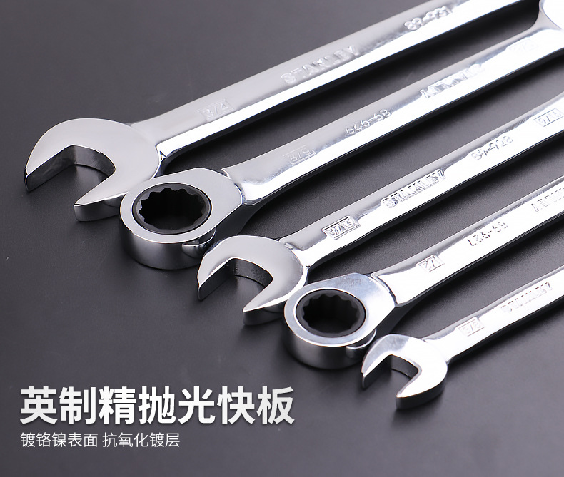 스탠리 영국식 고급 광택 래칫 이중 목적 래칫 렌치 전문 자동 수리 도구 노동 절약형 안경 렌치
