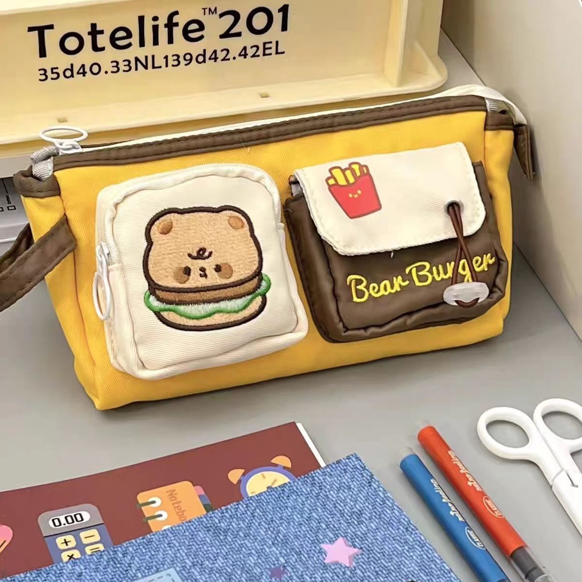 미국 복고풍 버거 필통, 귀여운 디자인, 틈새 문구 상자, 학생용 고급스러운 대용량 필통스토어 가기