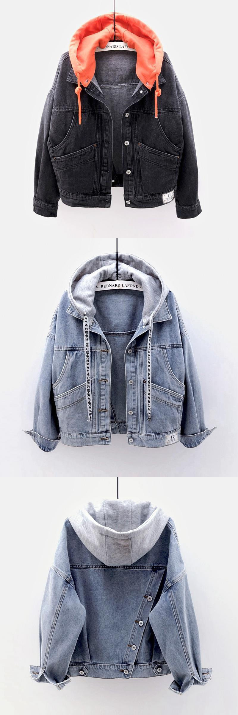 빈티지 데님 재킷 여성 학생 한국 스타일 느슨한 짧은 재킷 긴 소매 재킷 멀티 포켓 다목적 최고 가을과 겨울스토어 가기