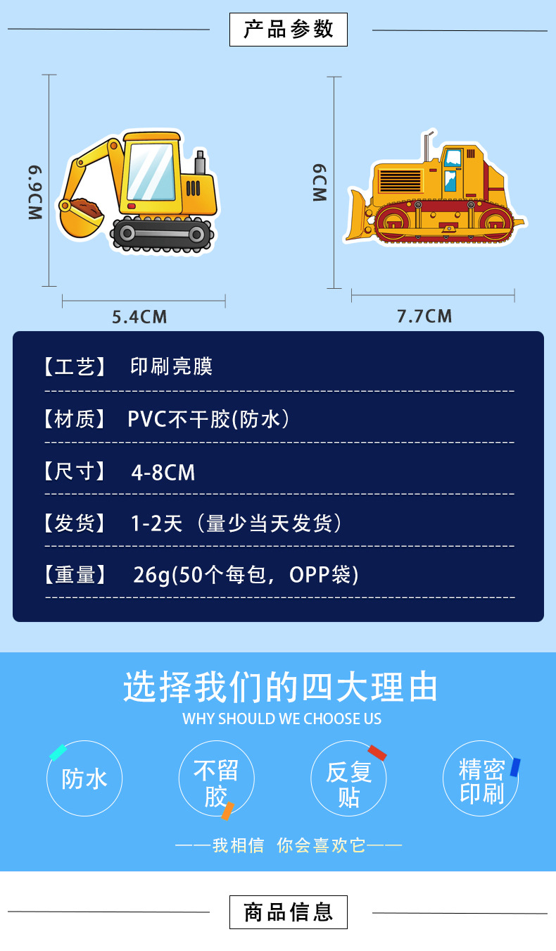 50 만화 엔지니어링 트럭 낙서 스티커 노트북 핸드북 장난감 장식 어린이 스티커스토어 가기