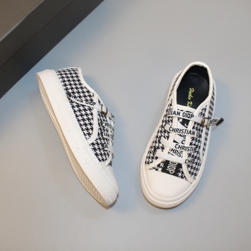 어린이 캔버스 신발 봄과 가을 새로운 부드러운 밑창 캐주얼 싱글 레이어 신발 세련된 Houndstooth 화이트 신발 슬립 온 소녀 스니커즈