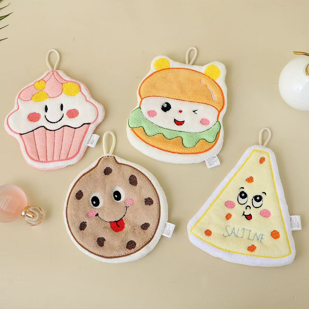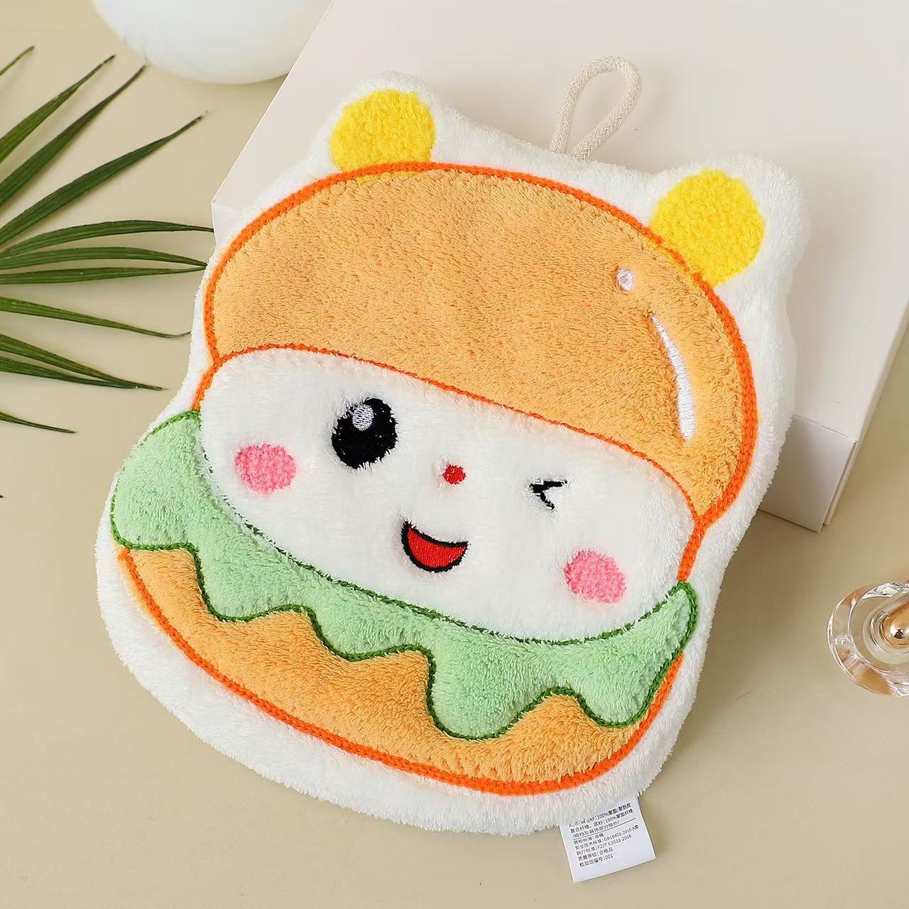 핸드 타월 교수형 만화 귀여운 베이킹 핸드 타월 어린이 두꺼운 산호 양털 주방 욕실 손 닦아