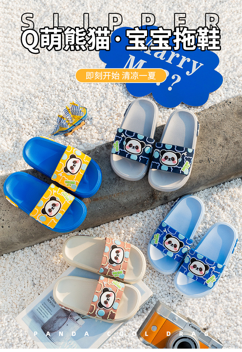 만화 팬더 어린이 슬리퍼 소년과 소녀를위한 새로운 두꺼운 바닥 슬리퍼 홈 루퍼 자동차 의류 샌들 도매