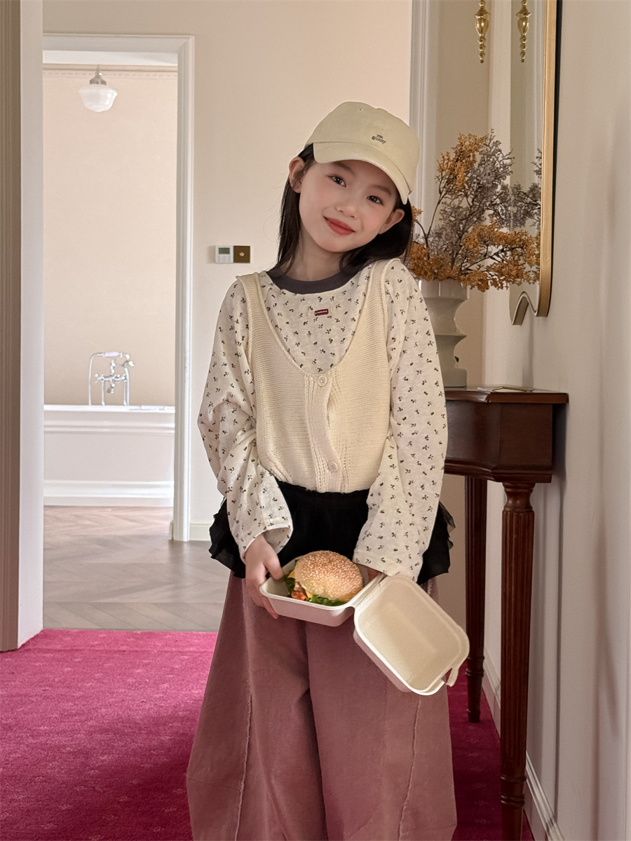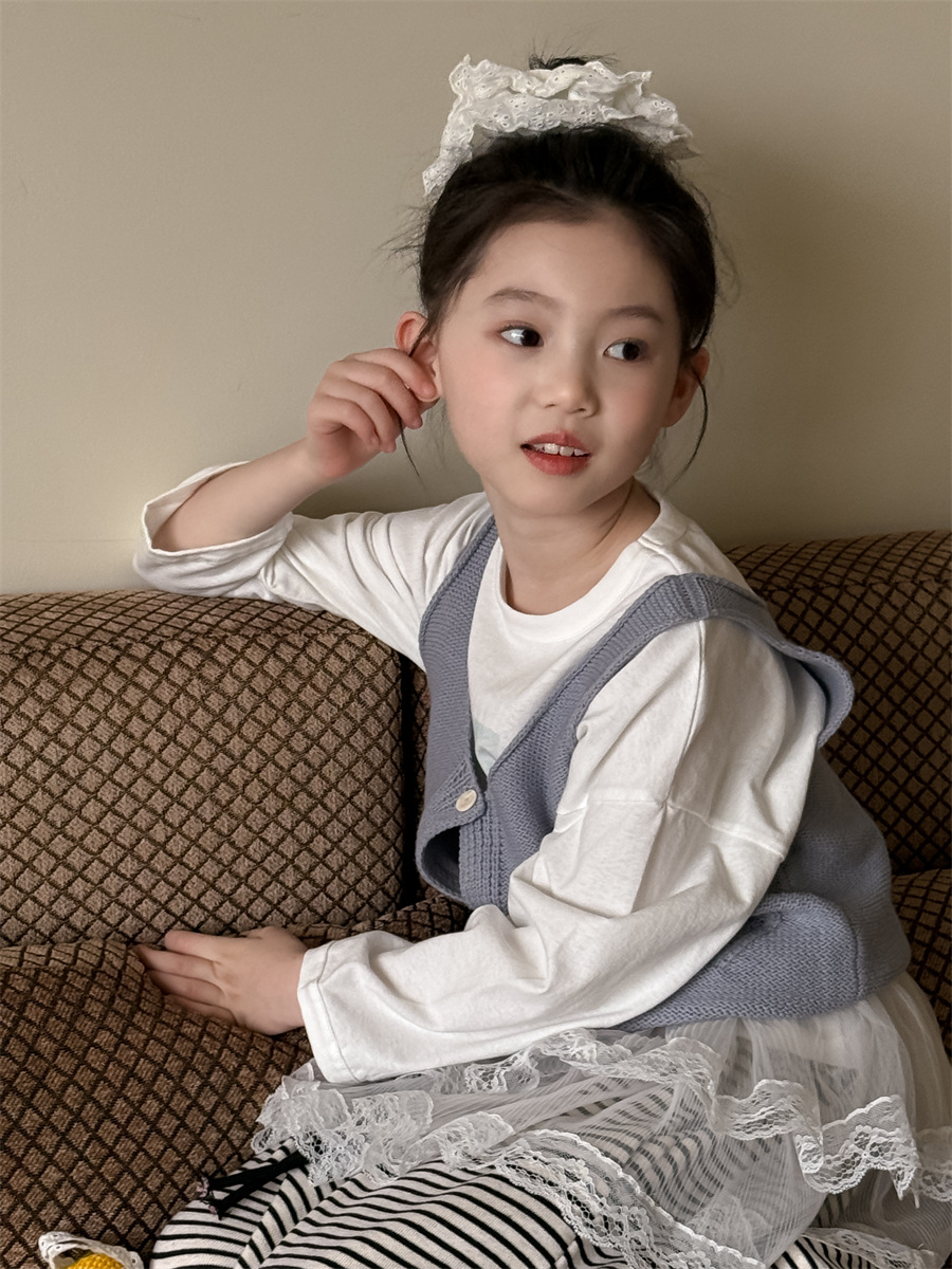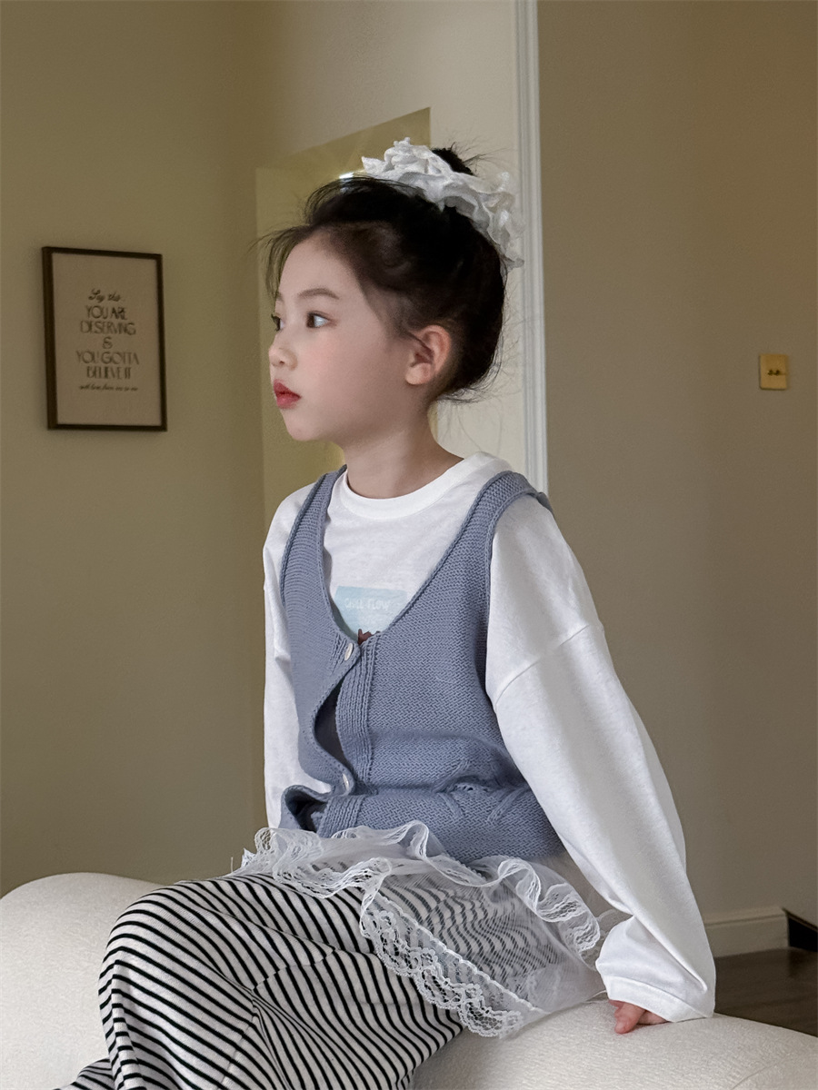 Hua and Xun KIDS 여아 니트 조끼 2025 봄 신작 아동용 민소매 탑 여아 서스펜더 스웨터스토어 가기