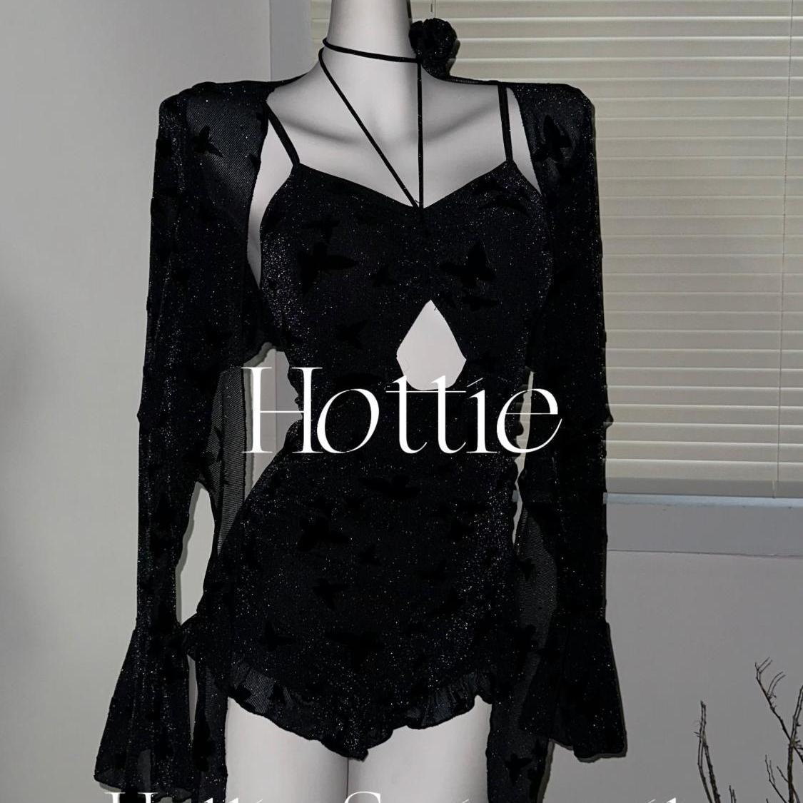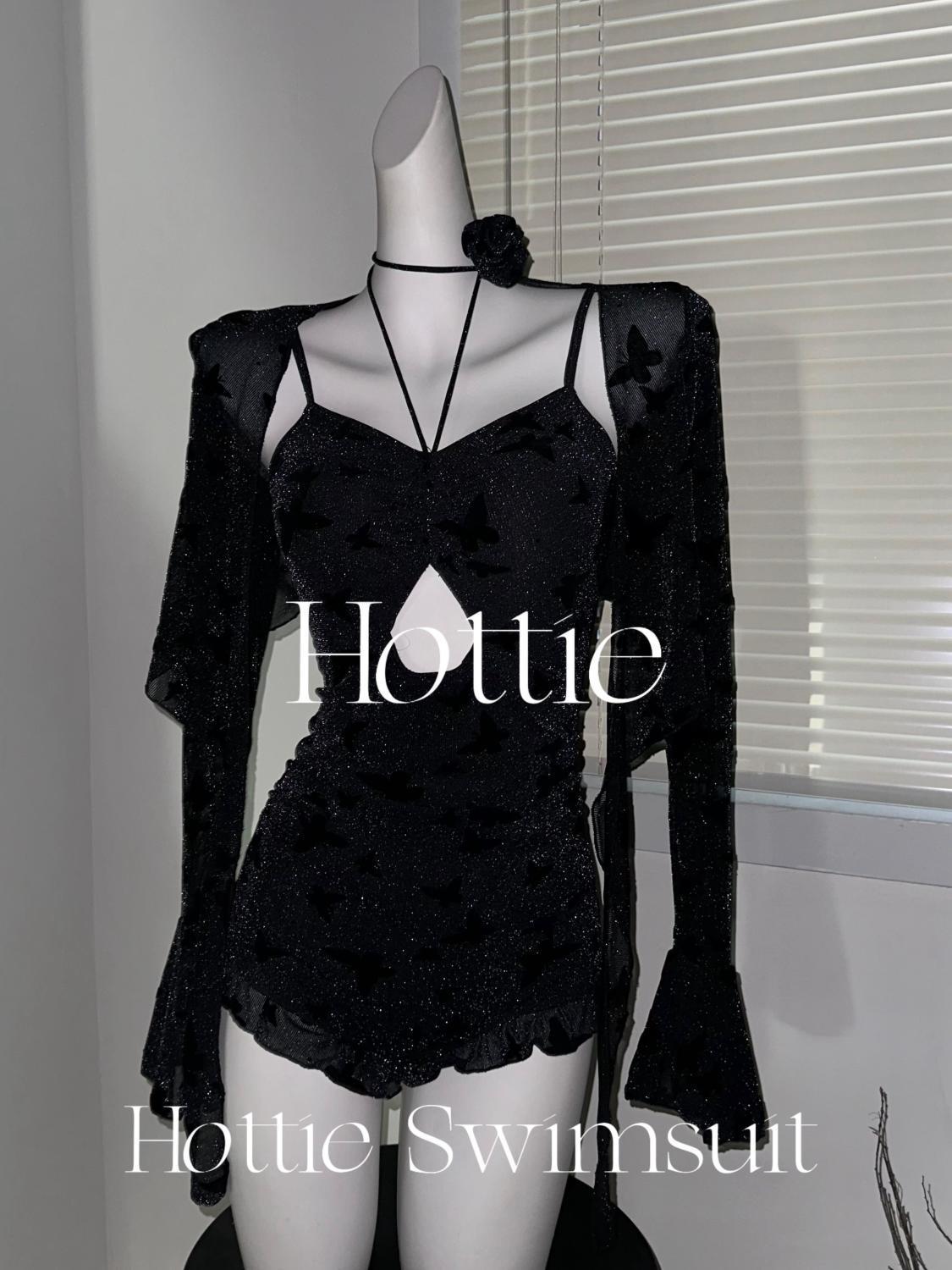 검은 나비 플래시 섹시한 보수적 인 수영복 두 조각 세트 외부 살로 덮여 슬림 온천 휴일 수영복스토어 가기
