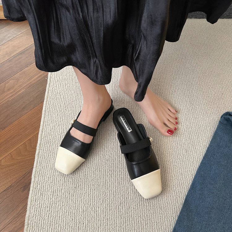 Baotou 하프 슬리퍼 여성 아우터 착용 2025 봄 새로운 패션 벨크로 두꺼운 힐 고급 뮬러 샌들 및 슬리퍼스토어 가기
