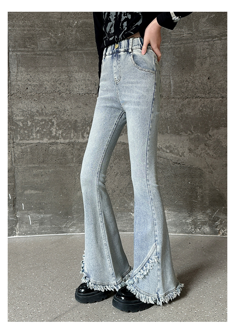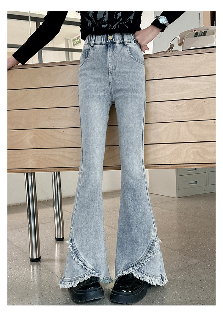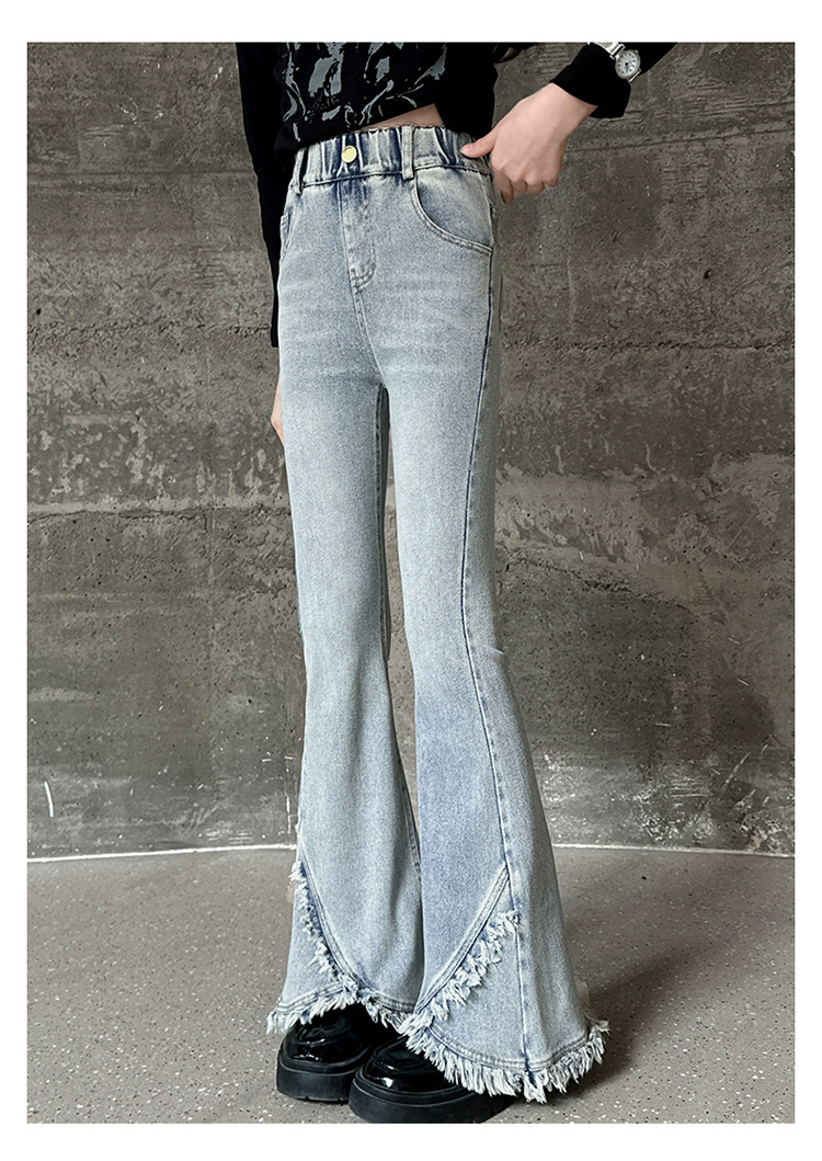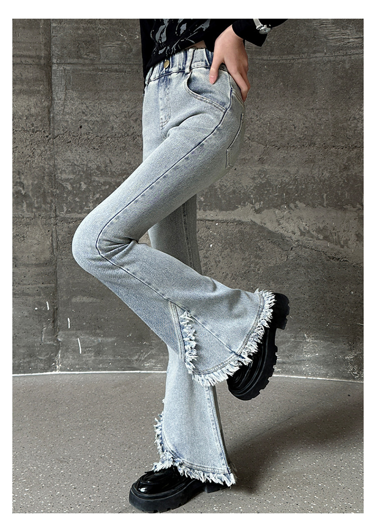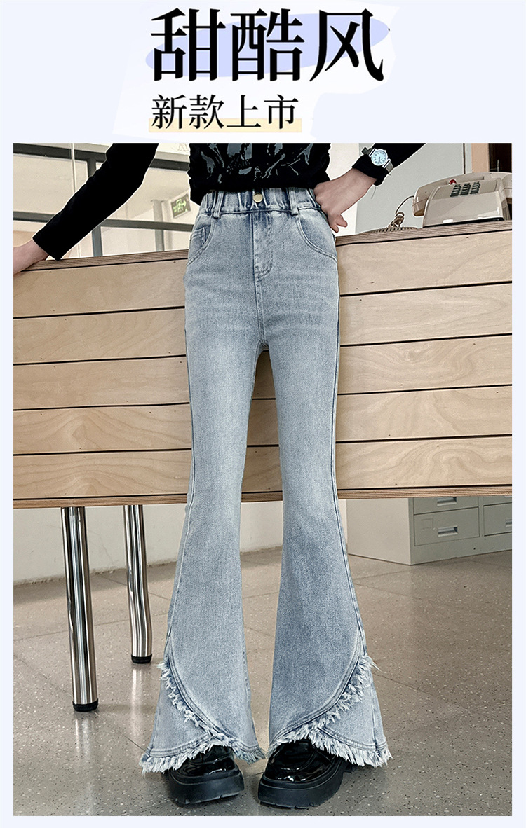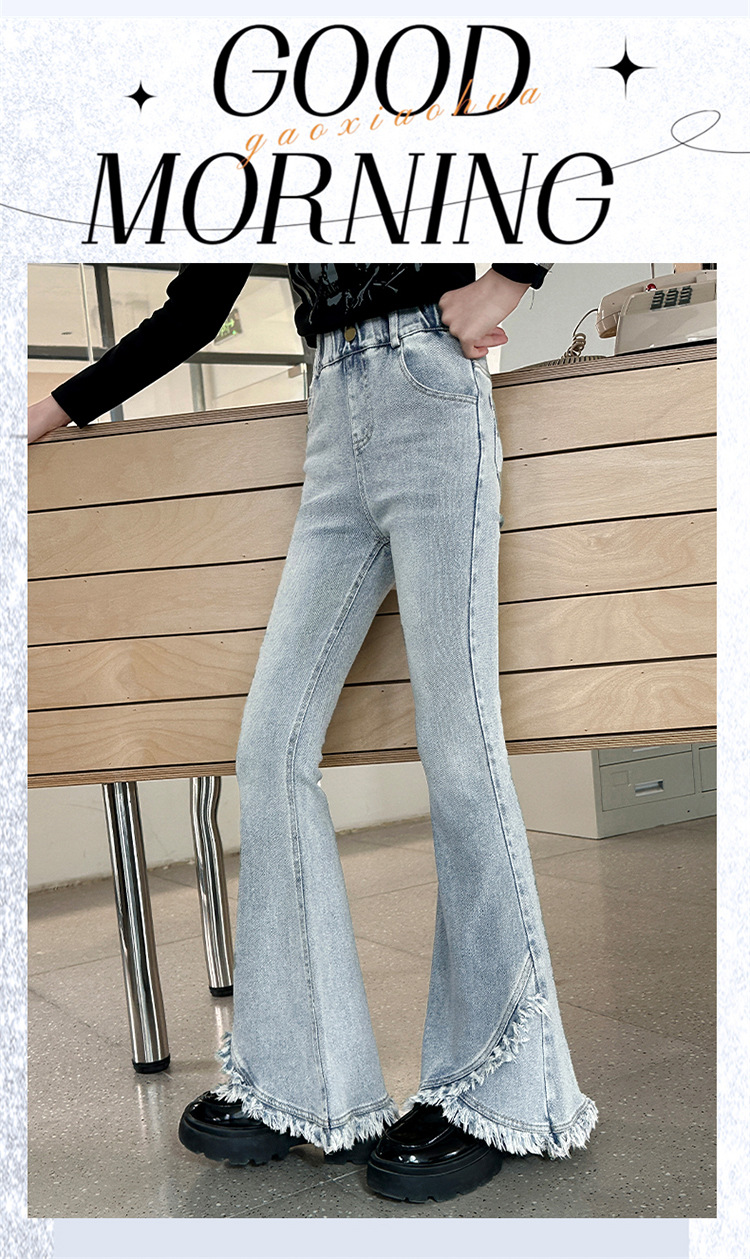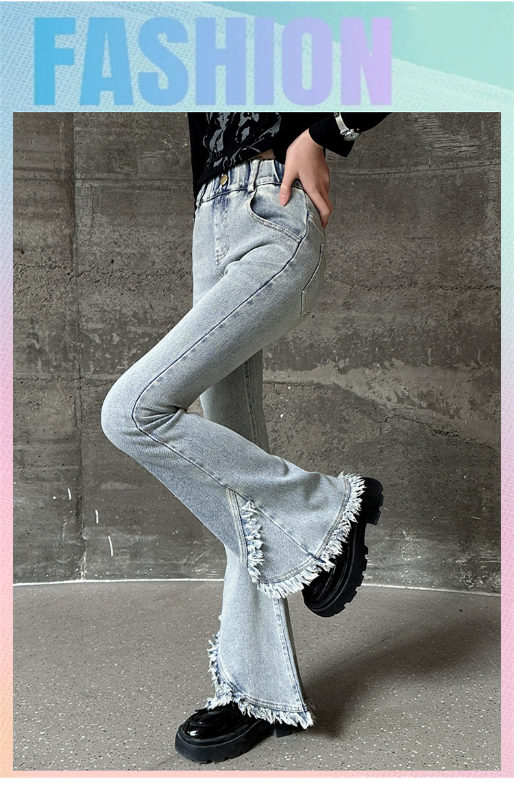 걸스 플래 팬츠 봄 새로운 한국 스타일 어린이 서양식 올 매치 슬림 핏 걸스 마이크로 핏 청바지 Huzhou Zhili