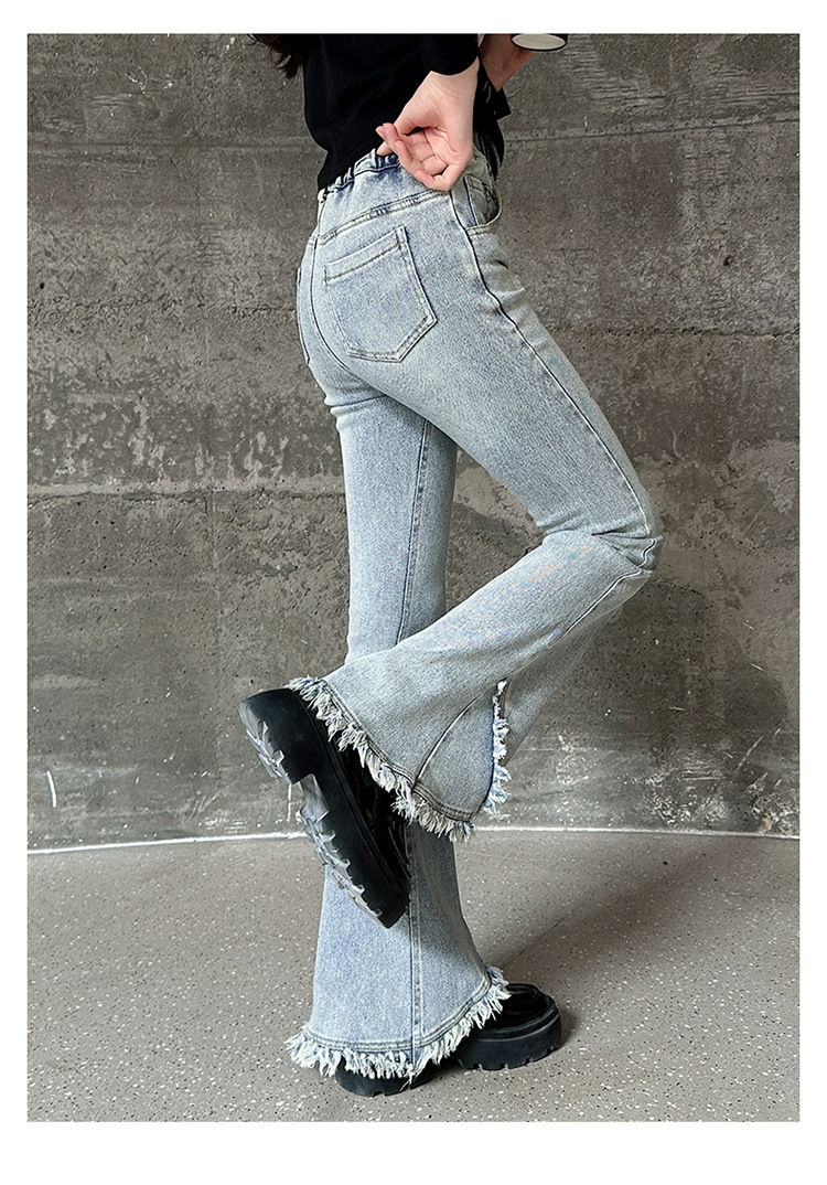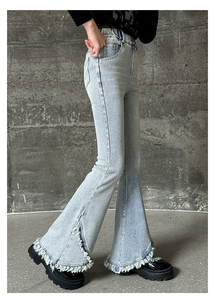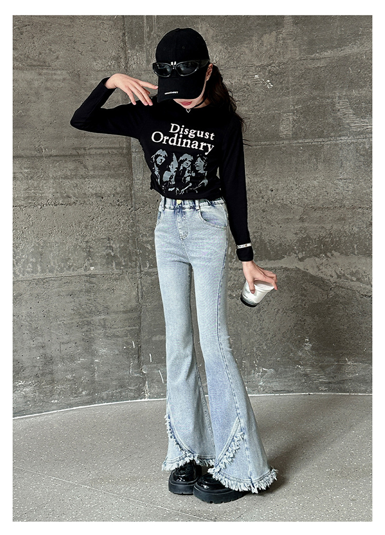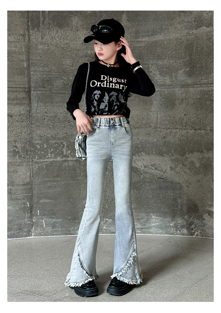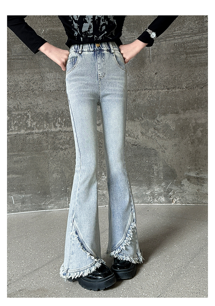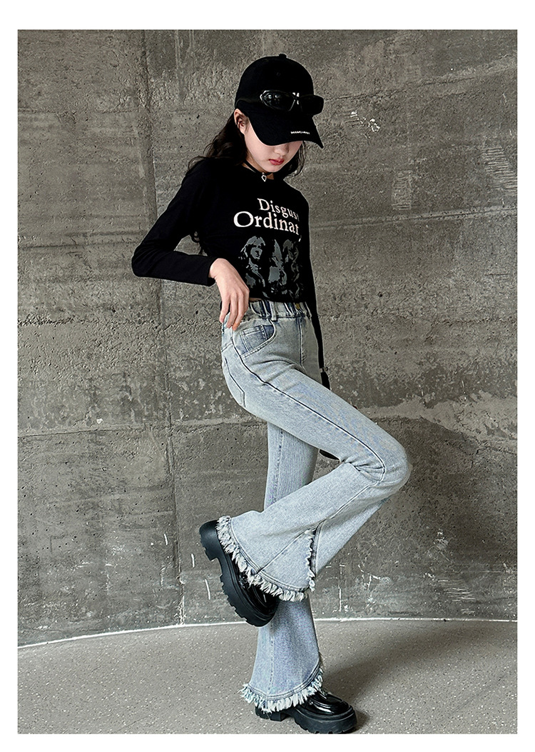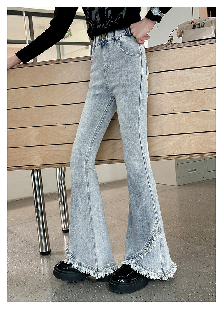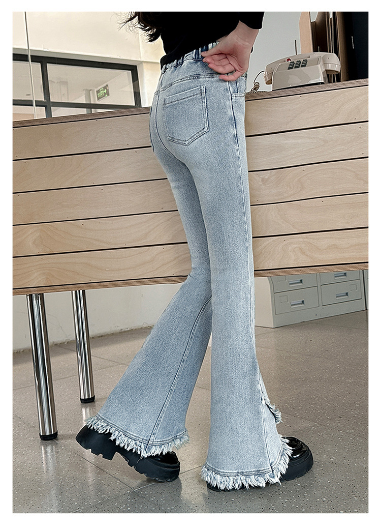 걸스 플래 팬츠 봄 새로운 한국 스타일 어린이 서양식 올 매치 슬림 핏 걸스 마이크로 핏 청바지 Huzhou Zhili