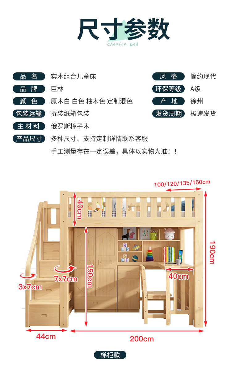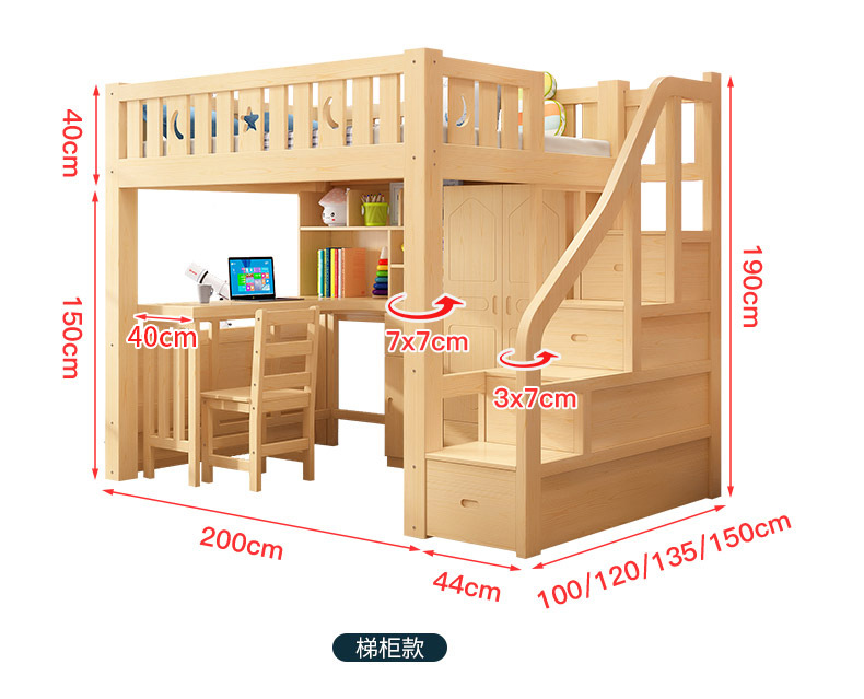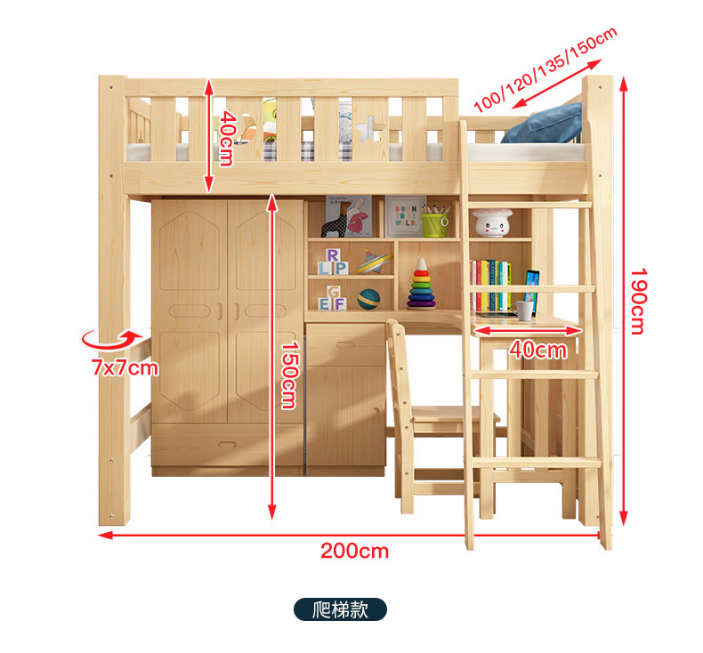 • 로프트 침대, 사다리 캐비닛, 통나무 + 설치 패키지 전체 세트