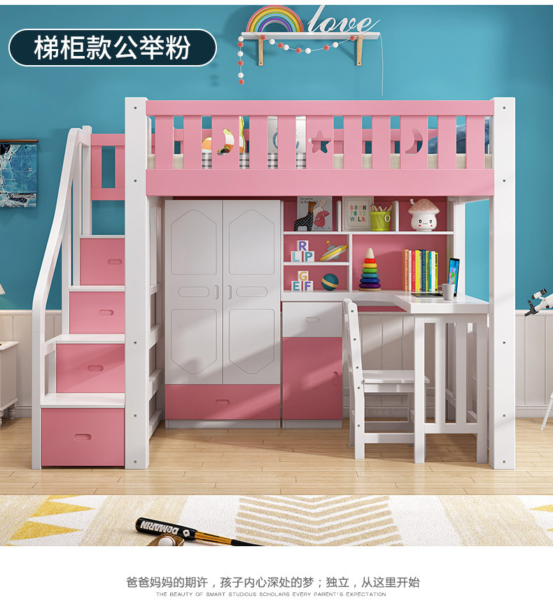• 로프트 침대, 직선 사다리 스타일 핑크 + 설치 패키지 전체 세트