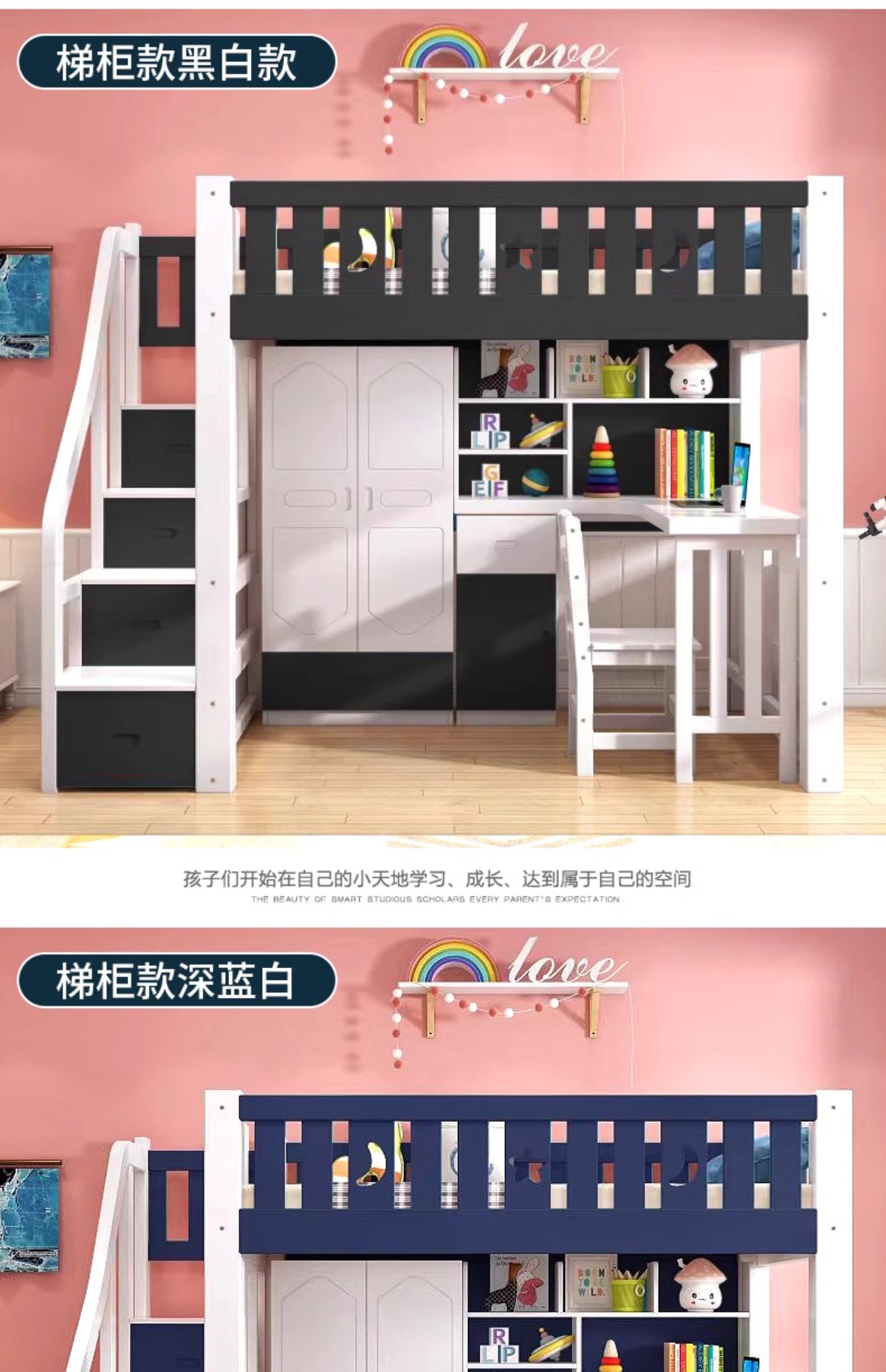• 로프트 침대 사다리 캐비닛 세트 핑크 + 설치 패키지