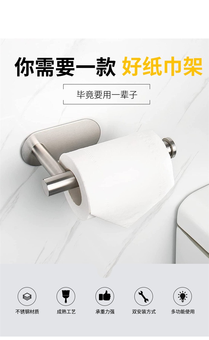 욕실 손톱없는 긴 롤 종이는 벽에 장착 된 스테인레스 스틸 화장지를 보유하고 있습니다.스토어 가기