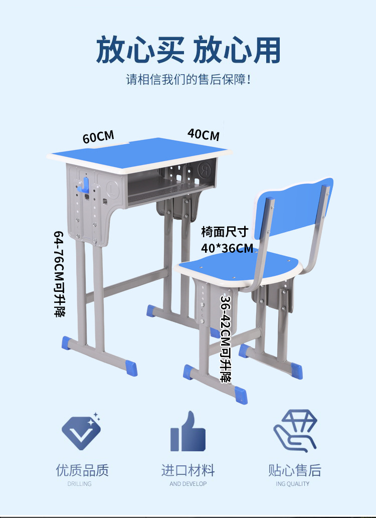 두꺼운 초중등학생 책상과 의자, 교육용 책상, 과외용 책상, 어린이 학습용 책상, 높이 조절 가능한 책상과 의자