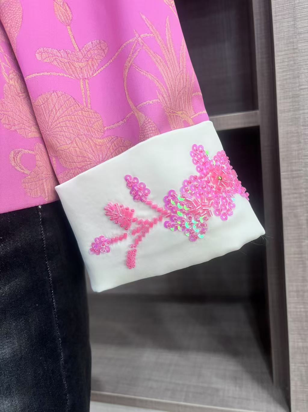 양미의 국가 스타일 라운드 넥 페어 중공업 자카드 비드 자수 재킷 여성 봄 디자인 센스 새로운 중국 스타일 탑