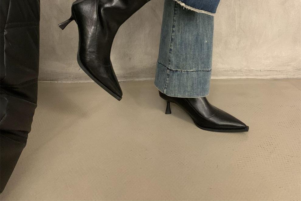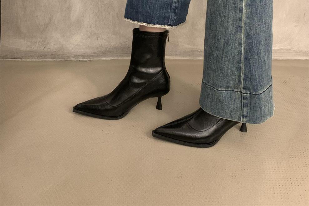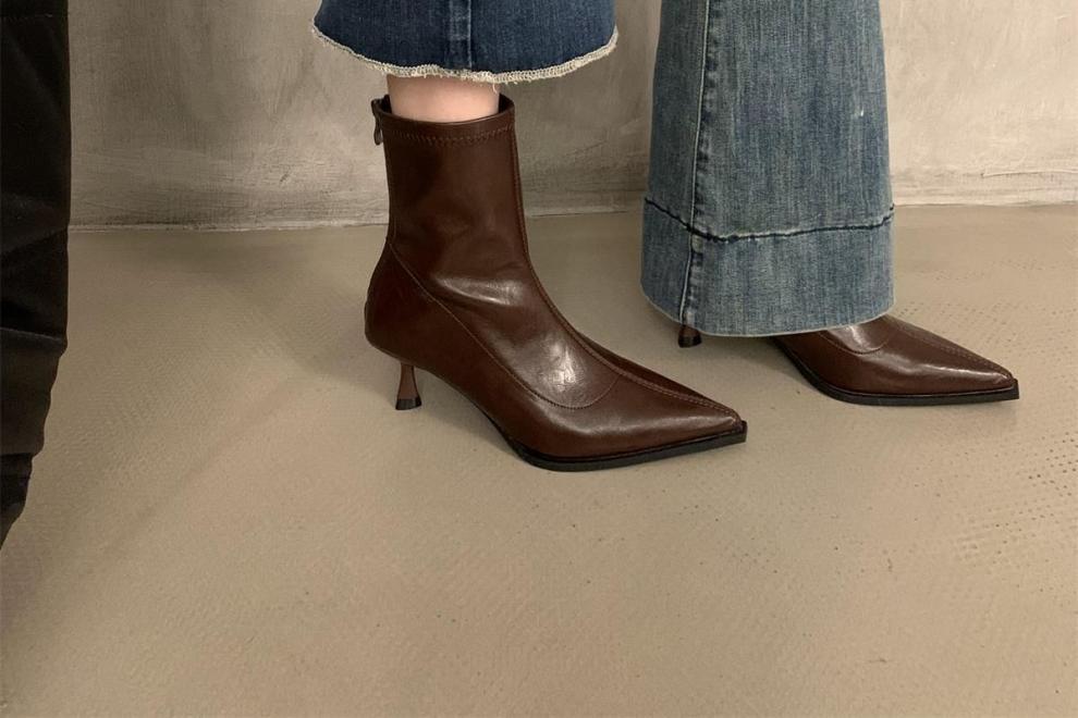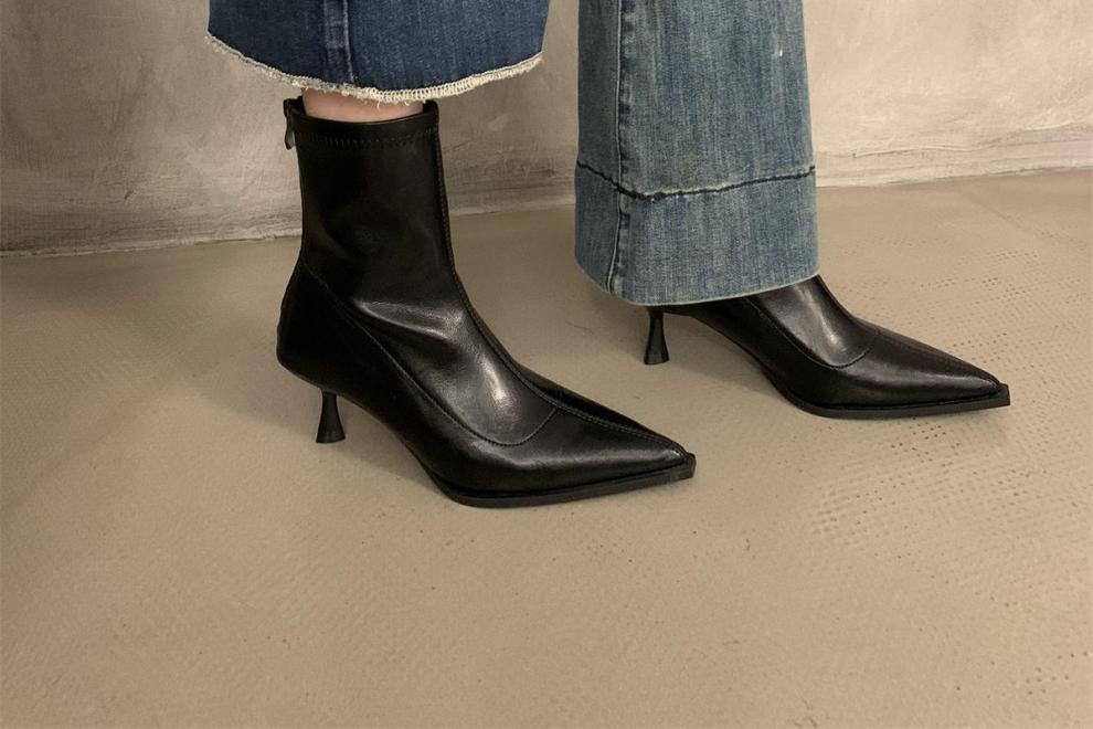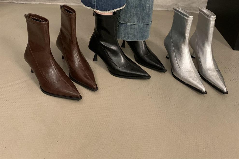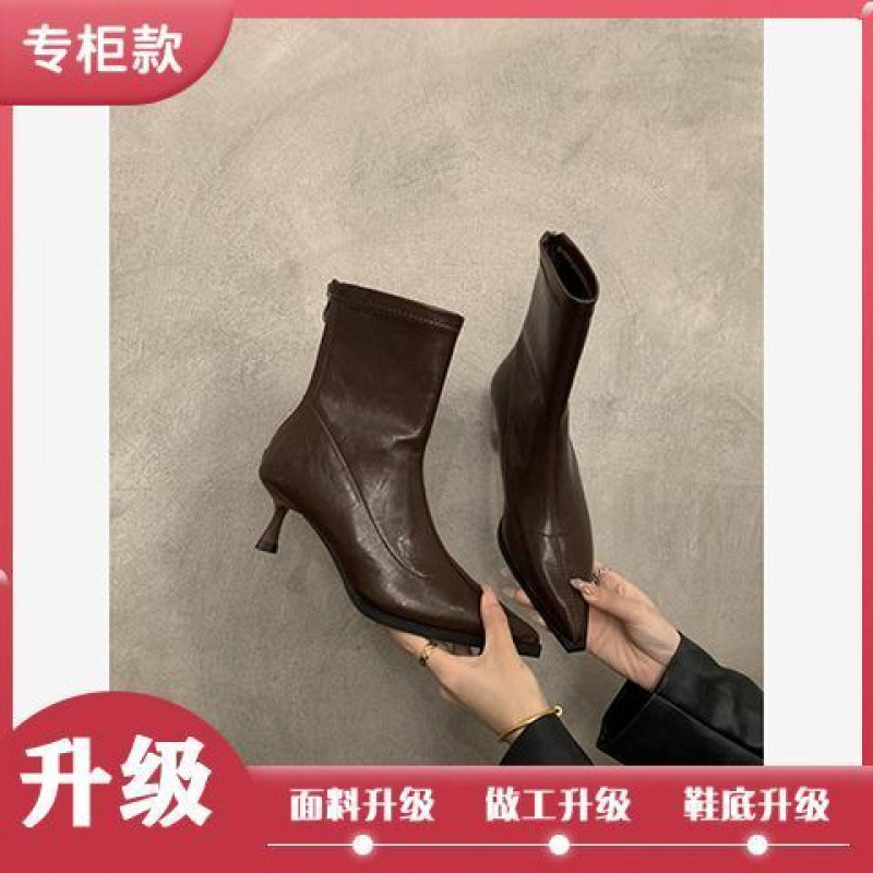 뾰족한 하이 엔드 발목 부츠 여성 가을 2024 새로운 도착 짧은 기모 하이힐 디자인 패션 얇은 부츠스토어 가기
