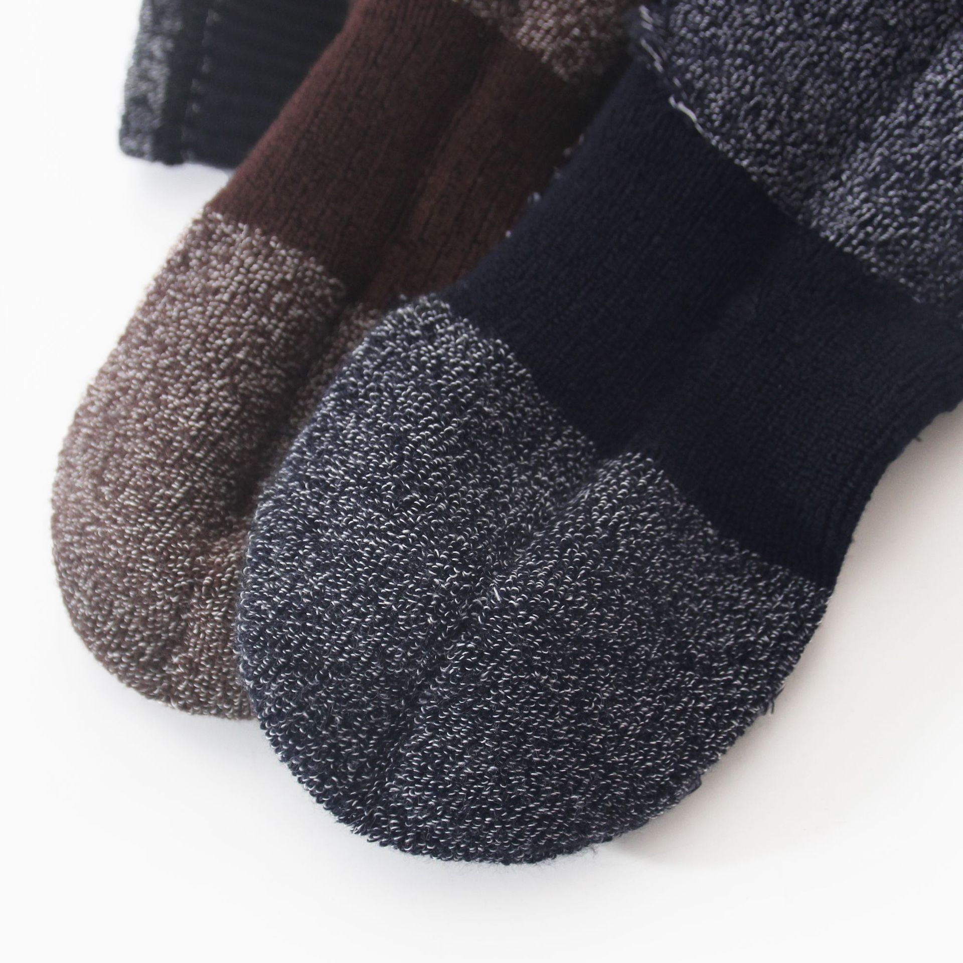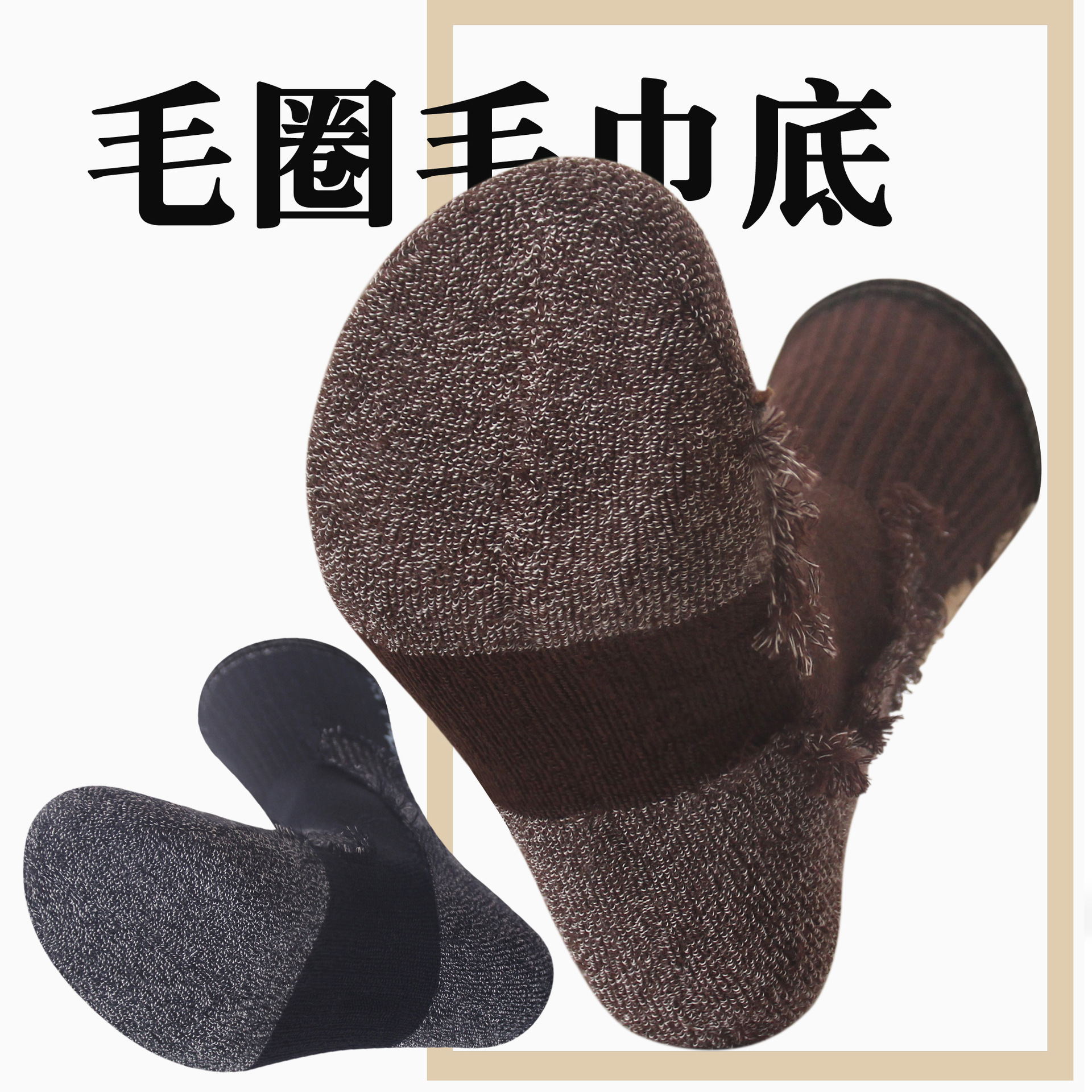 这款袜子是半毛圈,就是足底后跟和脚尖位置是毛圈