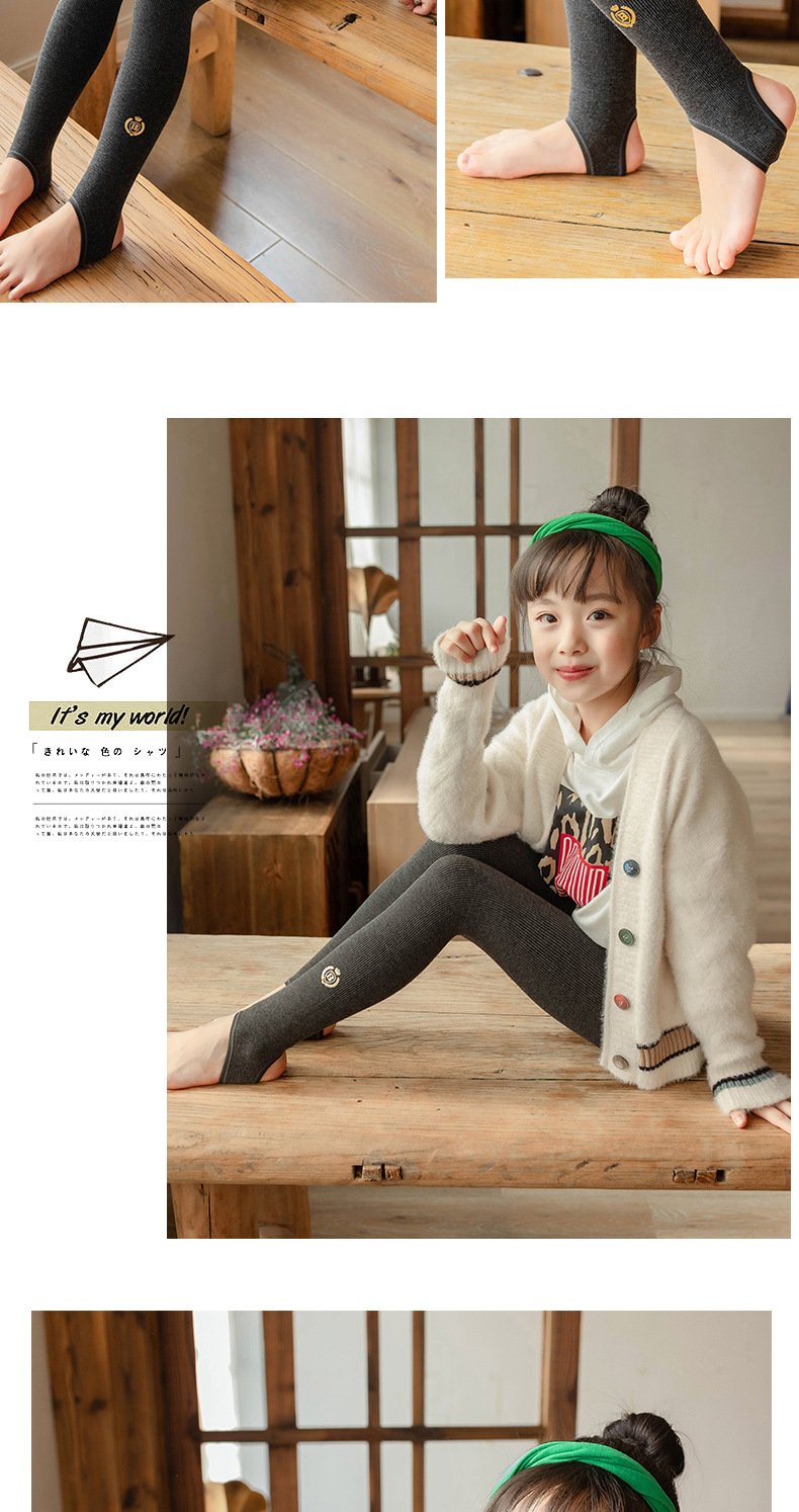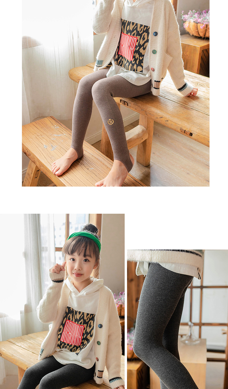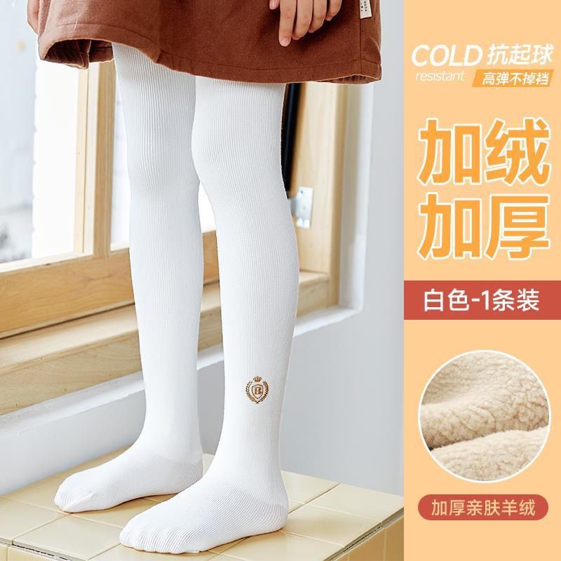 2025 소녀 가을과 겨울 기모 두꺼운 레깅스면 어린이 수직 배지 따뜻한 발 팬티 스타킹스토어 가기