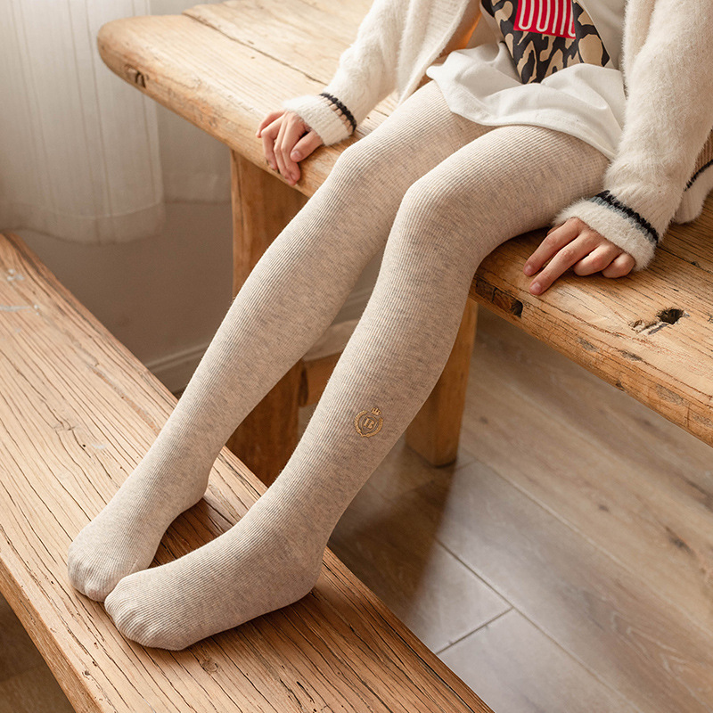 2025 소녀 가을과 겨울 기모 두꺼운 레깅스면 어린이 수직 배지 따뜻한 발 팬티 스타킹