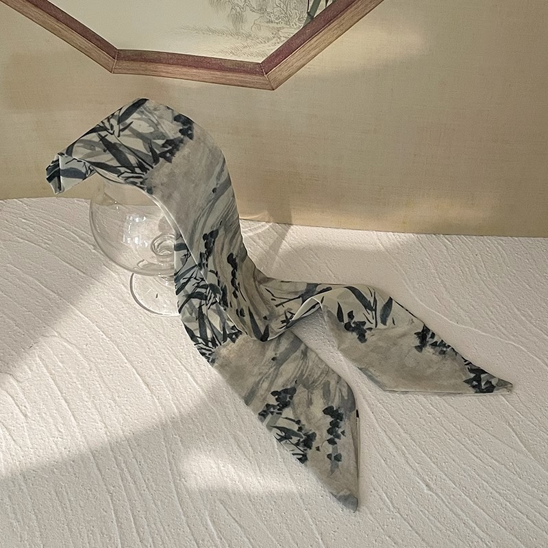 Guofeng 새로운 중국 잉크 대나무 리본 골동품 회화 및 서예 한푸 넥타이 헤어 작은 실크 스카프 올 매치 장식 스카프 리본