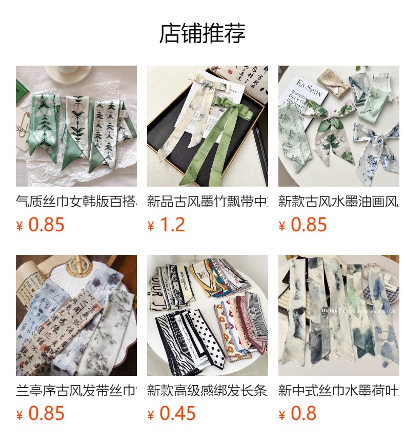 Guofeng 새로운 중국 잉크 대나무 리본 골동품 회화 및 서예 한푸 넥타이 헤어 작은 실크 스카프 올 매치 장식 스카프 리본스토어 가기