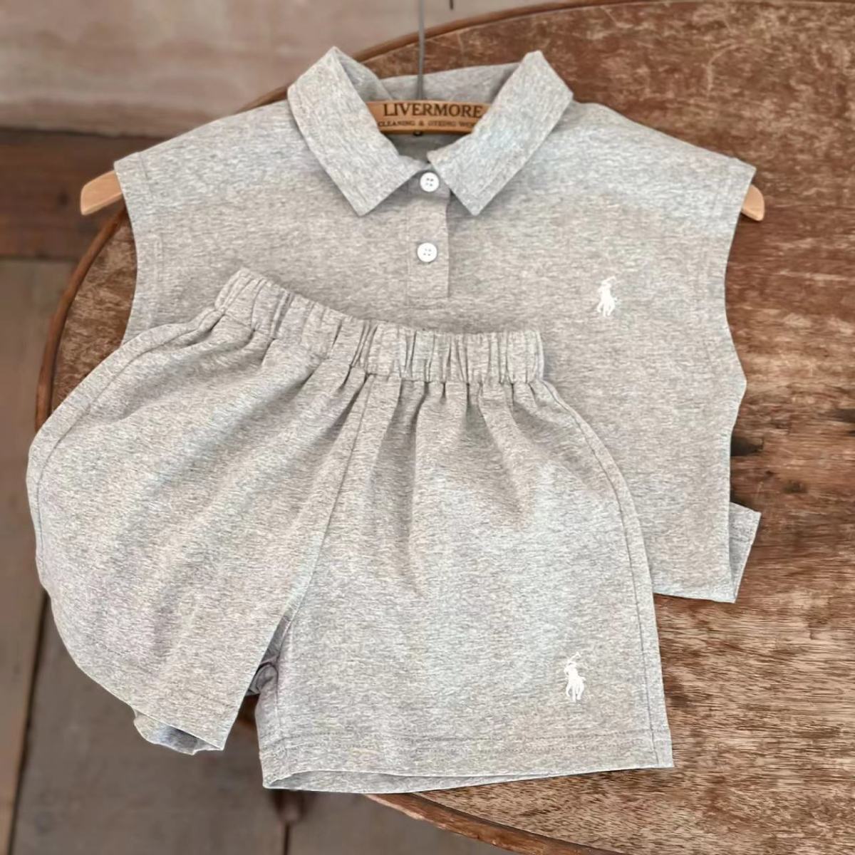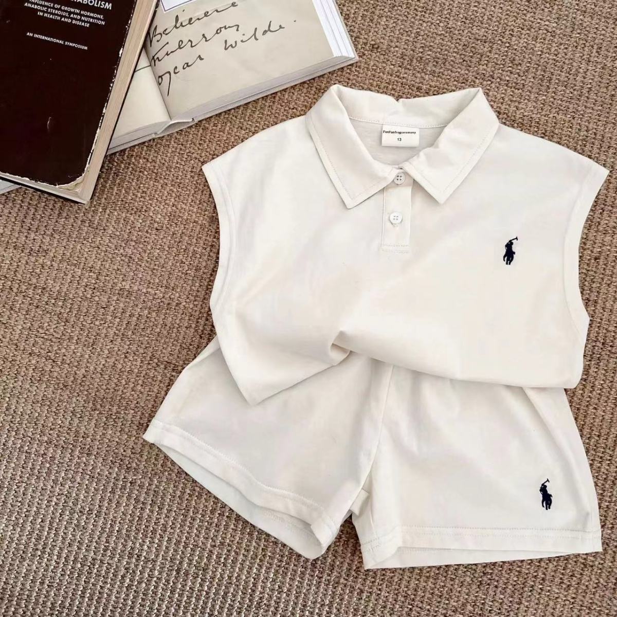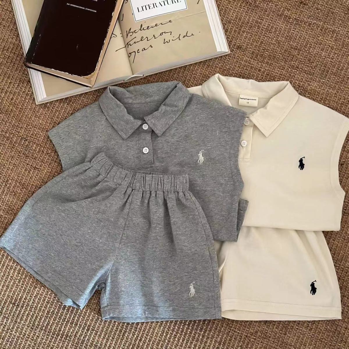 어린이 민소매 세트 여름 소년 반바지 단색 어린이 폴로 셔츠 트렌디 브랜드 아기 티셔츠 투피스 세트 여성용 랩스토어 가기