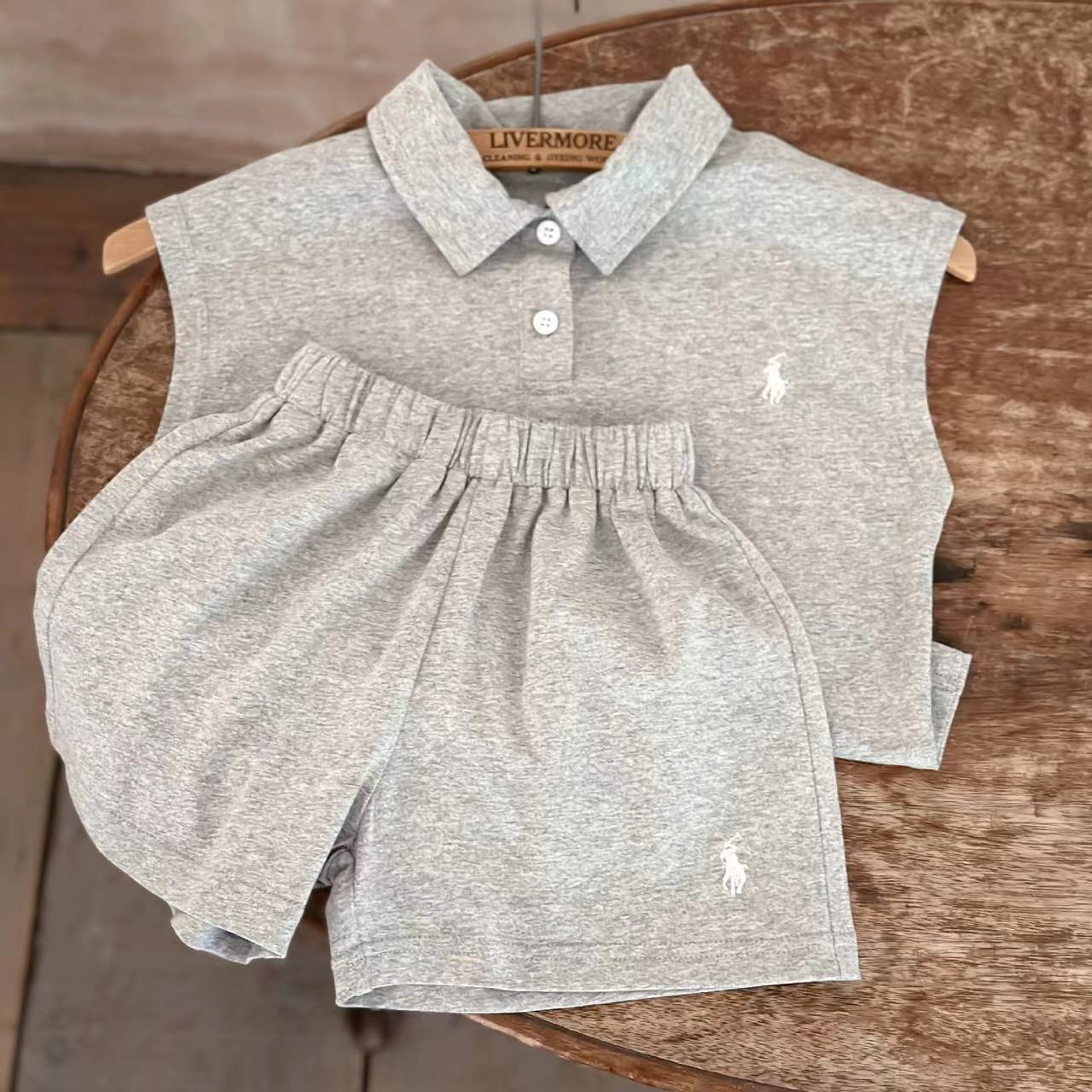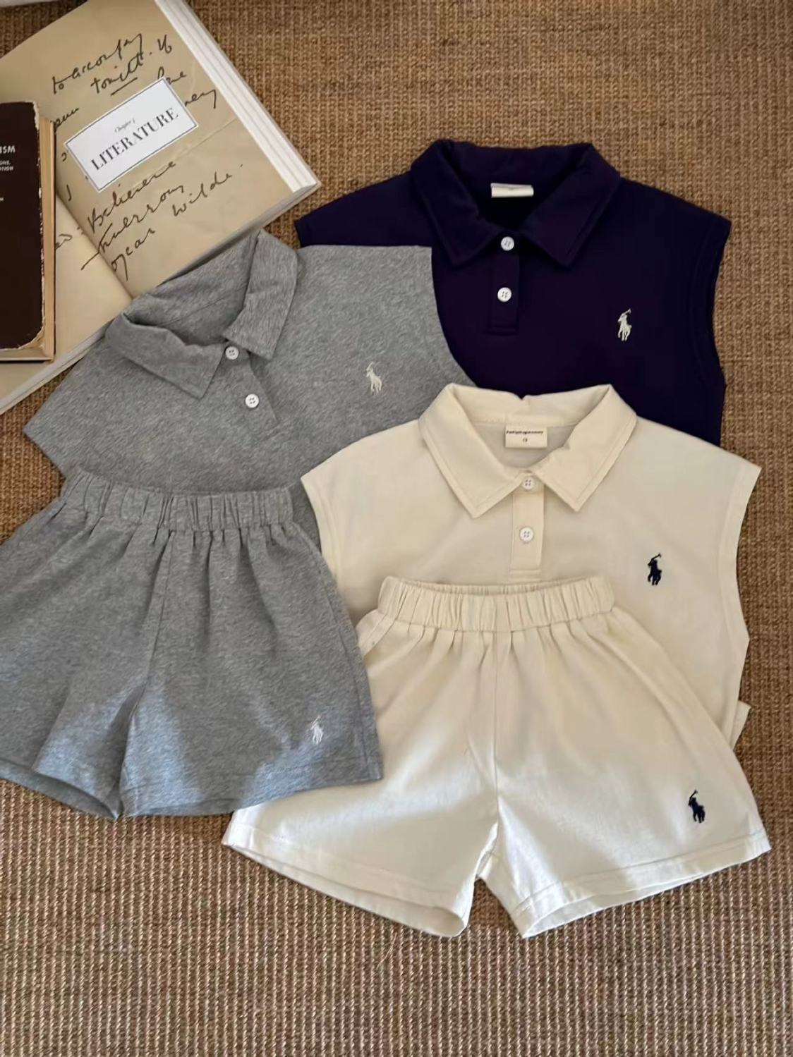 儿童无袖套装夏男童短裤纯色小童POLO衫潮牌宝宝T恤两件套女翻领