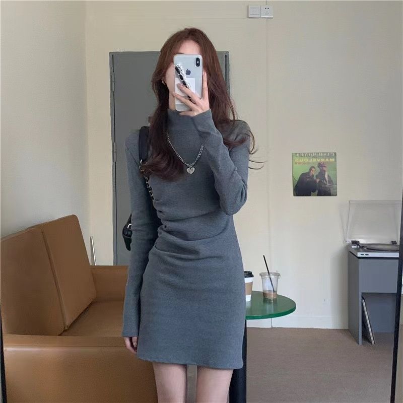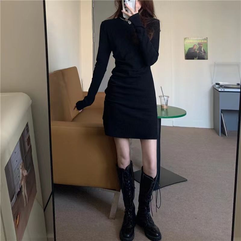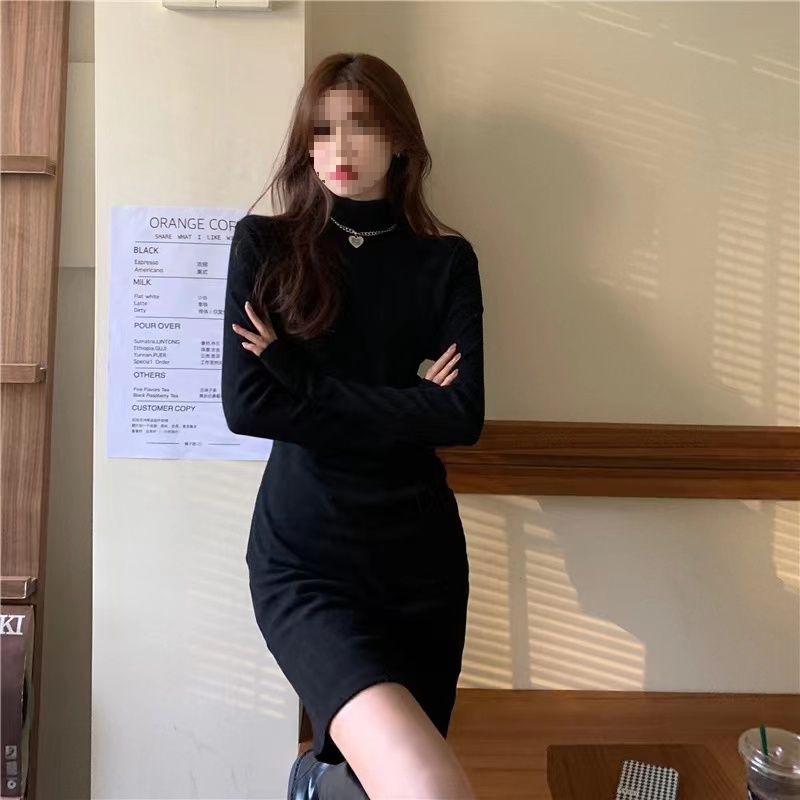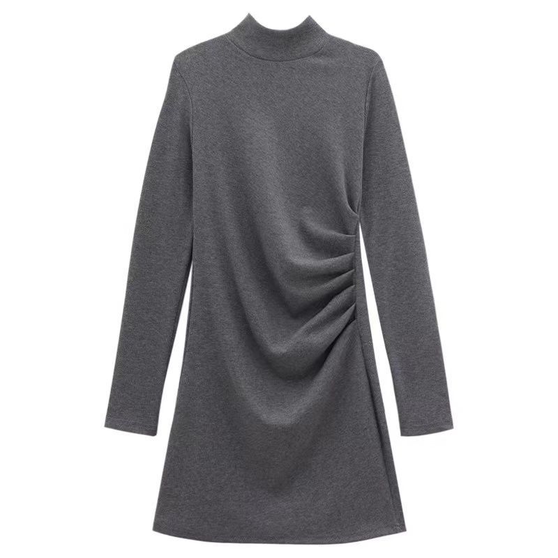 가을과 겨울의 국경 간 세대 조커 디자인 플리츠 슬림 하프 하이 칼라 원피스 여성용 허리 A 라인 스커트