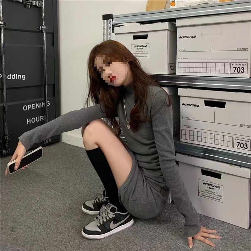 가을과 겨울의 국경 간 세대 조커 디자인 플리츠 슬림 하프 하이 칼라 원피스 여성용 허리 A 라인 스커트스토어 가기