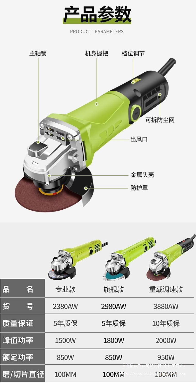 미국 앵글 그라인더 다기능 그라인딩 기계 손 그라인딩 기계 연마 기계 절단 기계 가정용 핸드 그라인딩 휠스토어 가기