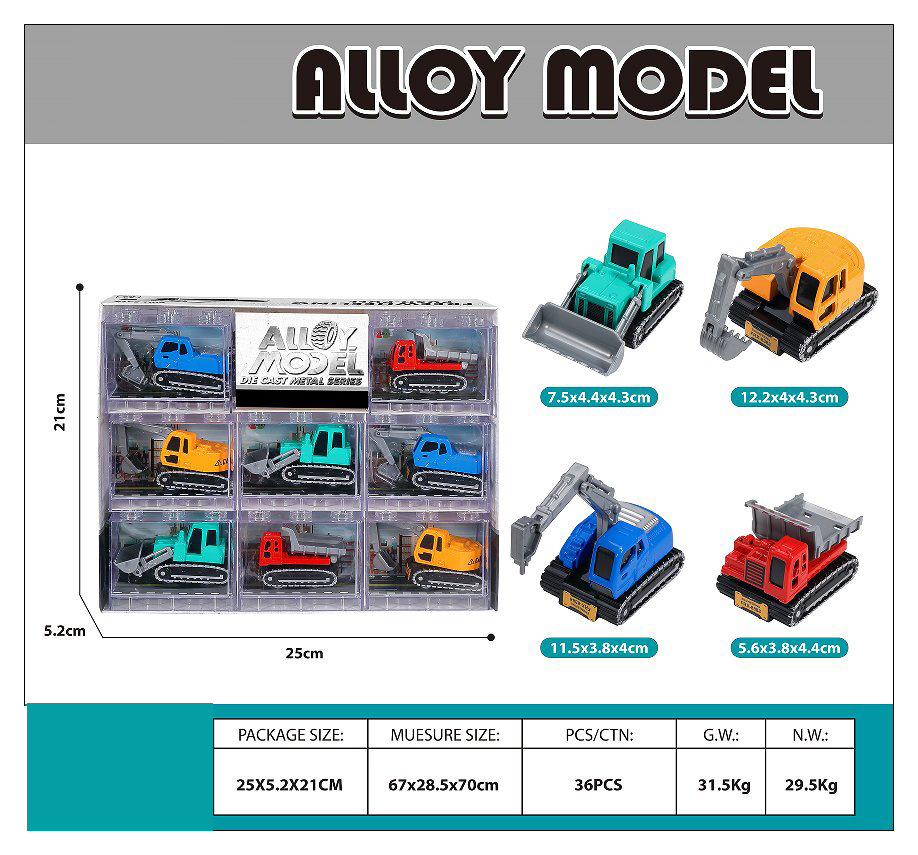 品名:8PCS积木开窗盒 迷你Q版回力合金工程车(4款4色)
