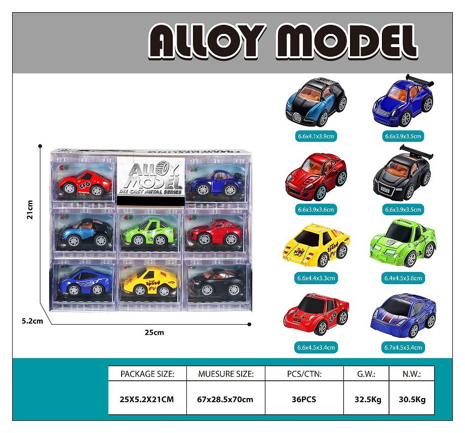 品名:8PCS积木开窗盒 合金Q版回力赛车、跑车 (8款8色)