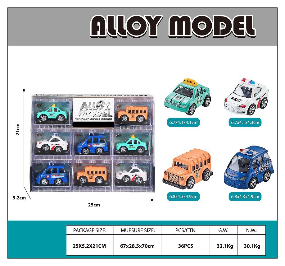 品名:8PCS积木开窗盒 合金Q版回力城市车(4款4色)