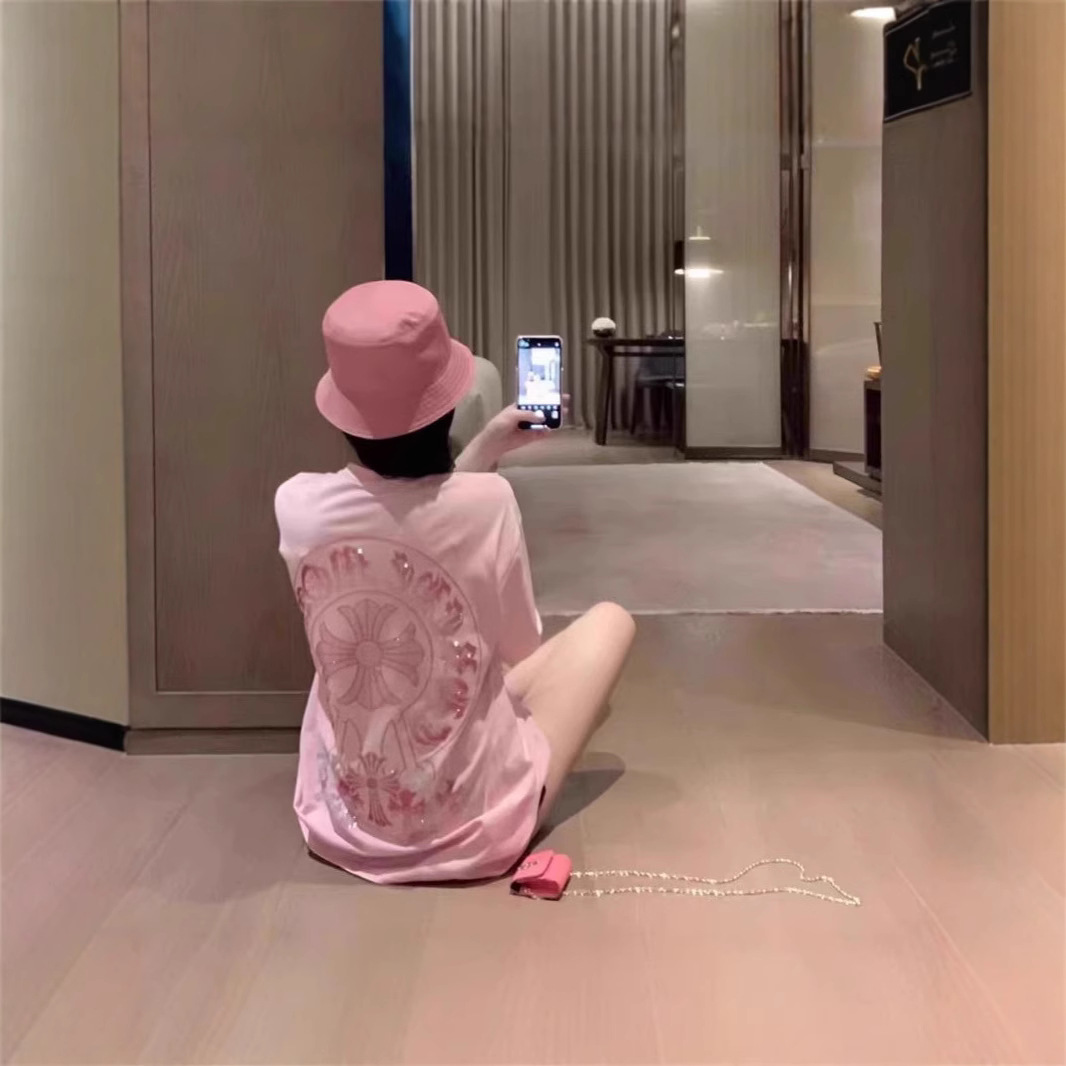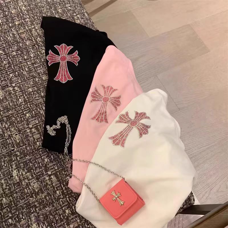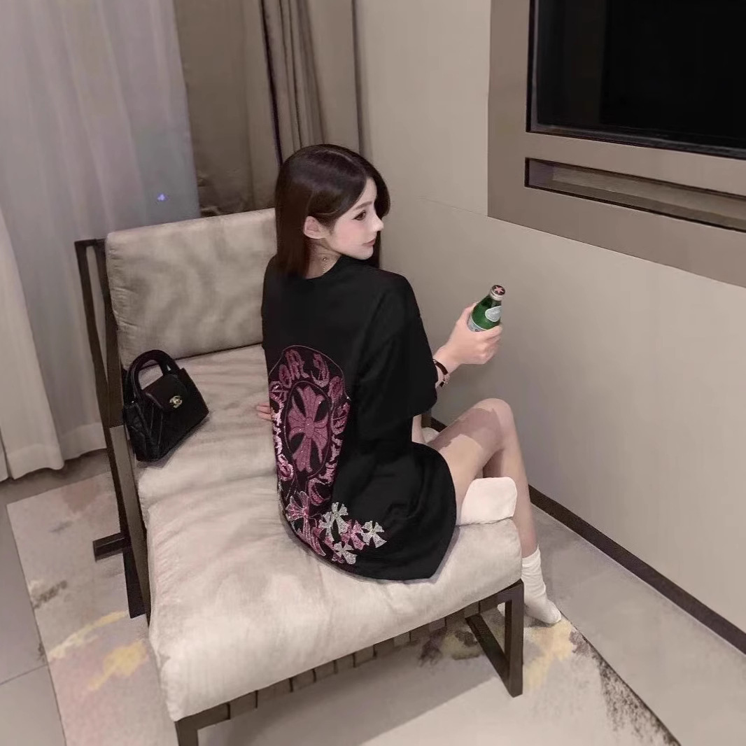 여름 새로운 국가 패션 우아한 핫 드릴링 100 면 반팔 티셔츠 여성용 중간 길이의 서양식 슬리밍 탑
