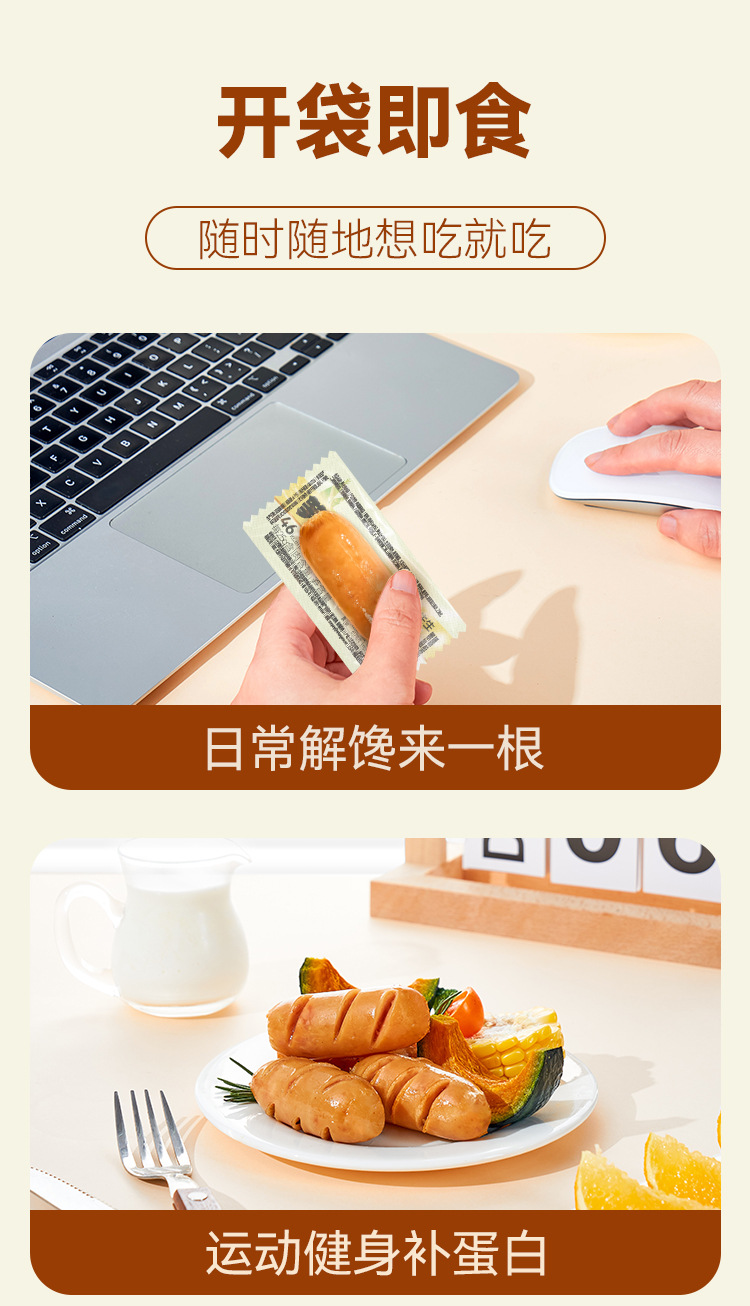 캥거루 죽순 뾰족한 치킨 소시지 오픈 백 바로 먹을 수있는 치킨 소시지 식사 대체 저체중 닭 가슴살 소시지 스낵