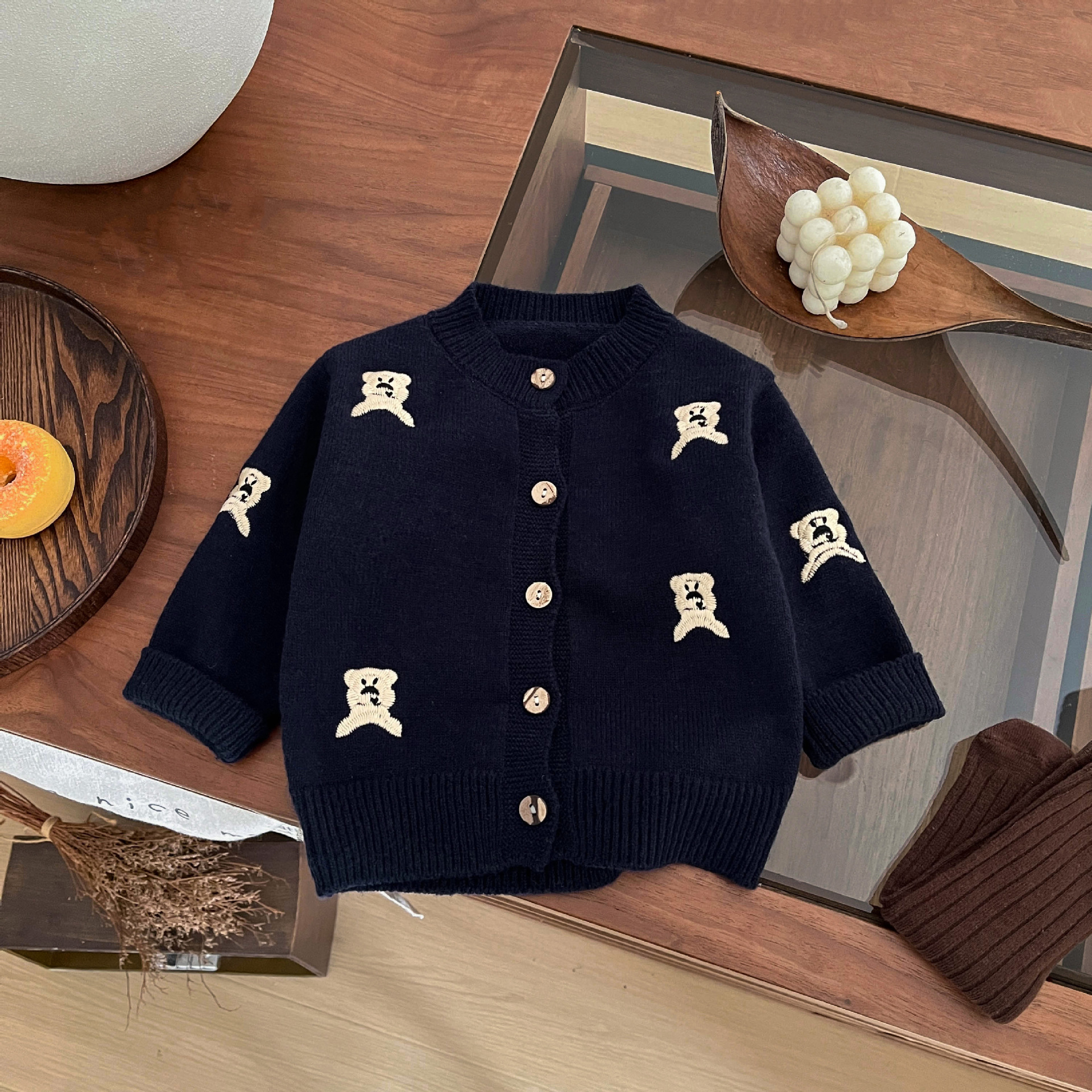 한국 아동복 소년 소녀 니트 카디건 봄 2025 새로운 아기 가을 아기 만화 곰 코트 조수스토어 가기