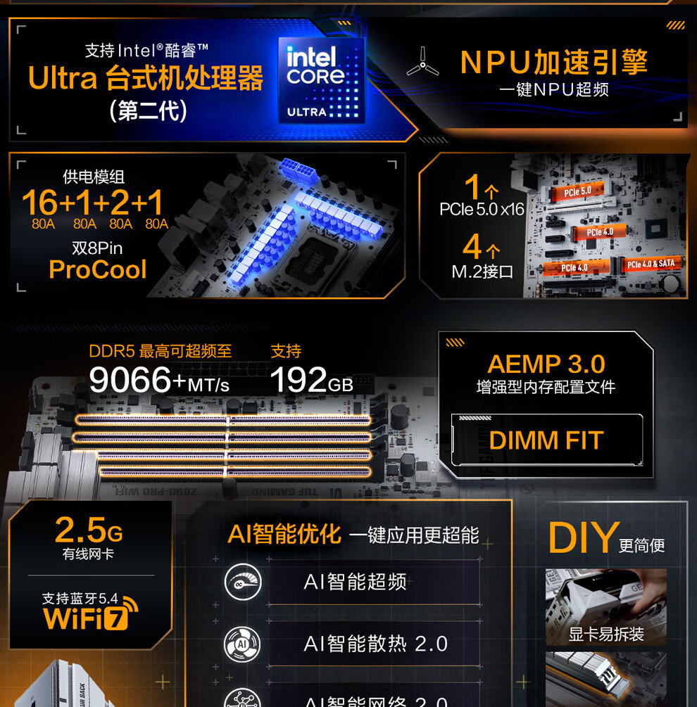 TUF GAMING Z890-PRO WIFI 마더 보드는 CPU 285K/265K/265KF (I스토어 가기