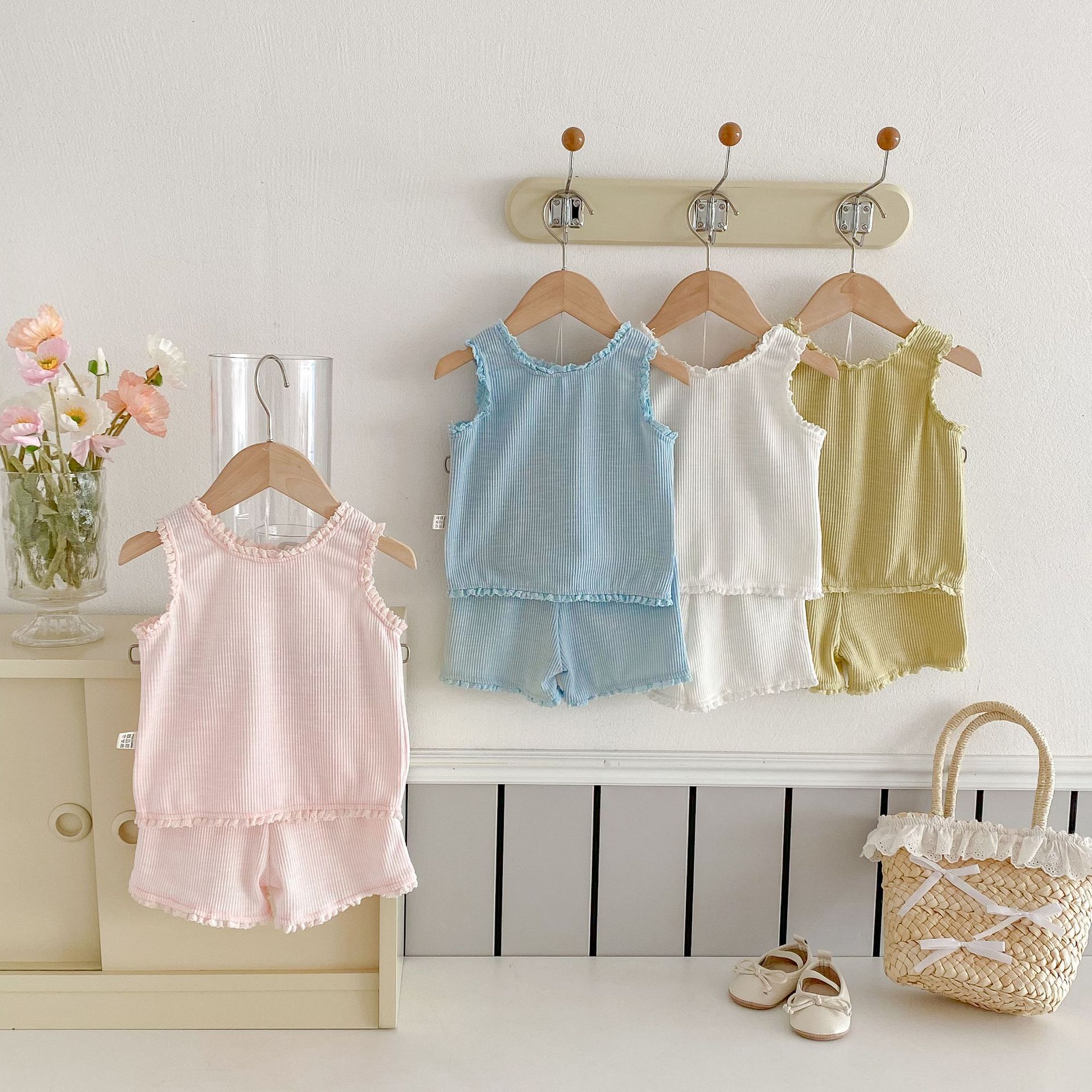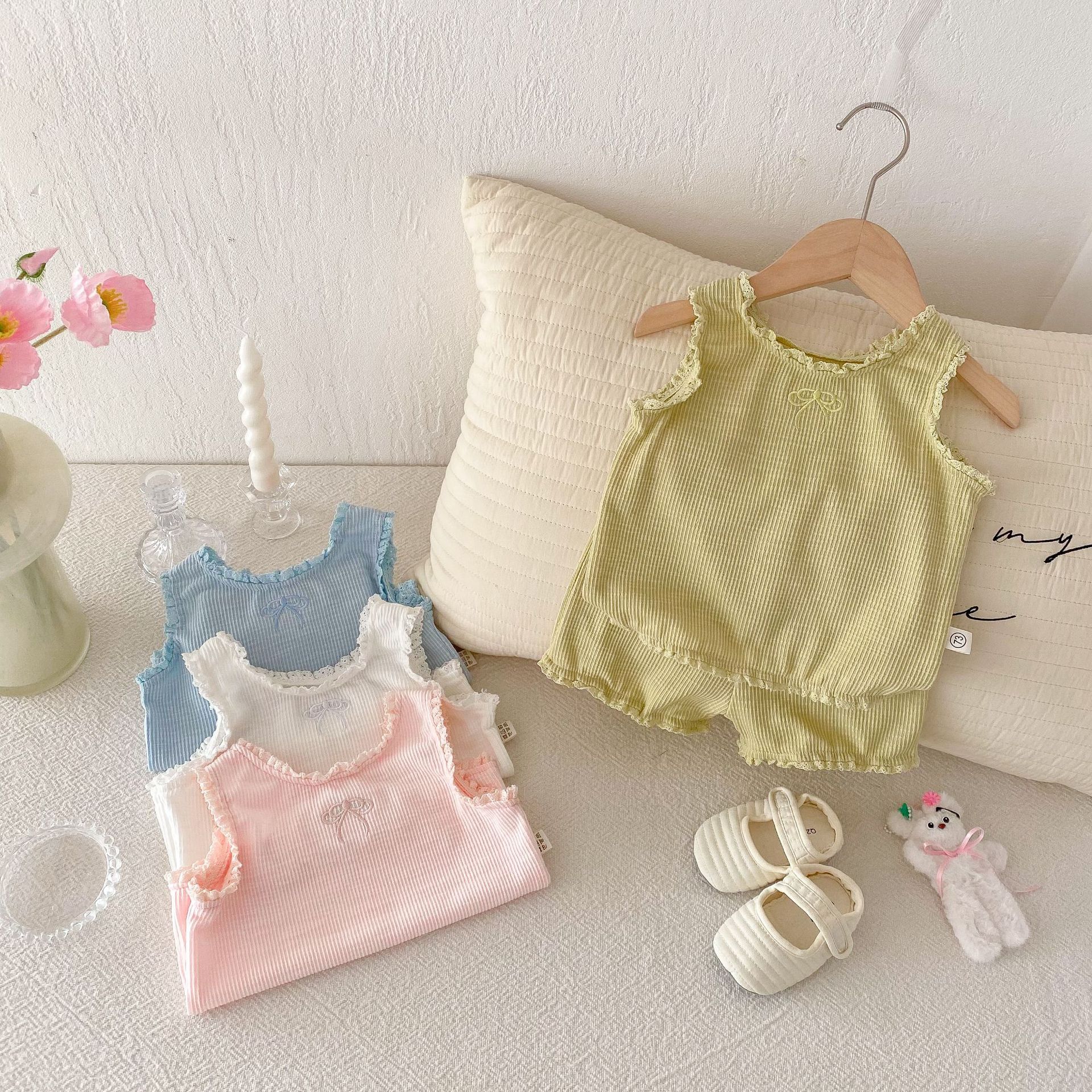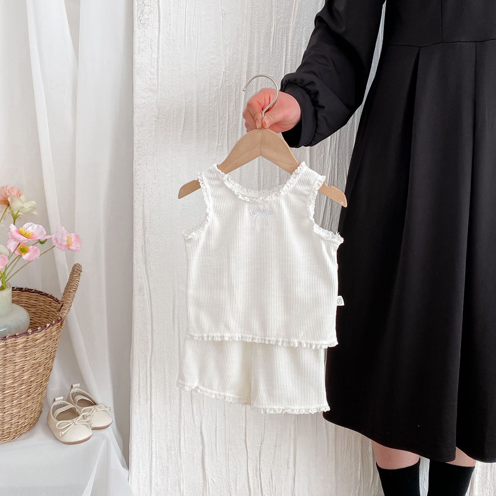 정장 한국어 스타일 ins 소녀 정장 민소매 탑 반바지 두 조각 아기 소년 여름 스타일 통기성 서양식 외출복