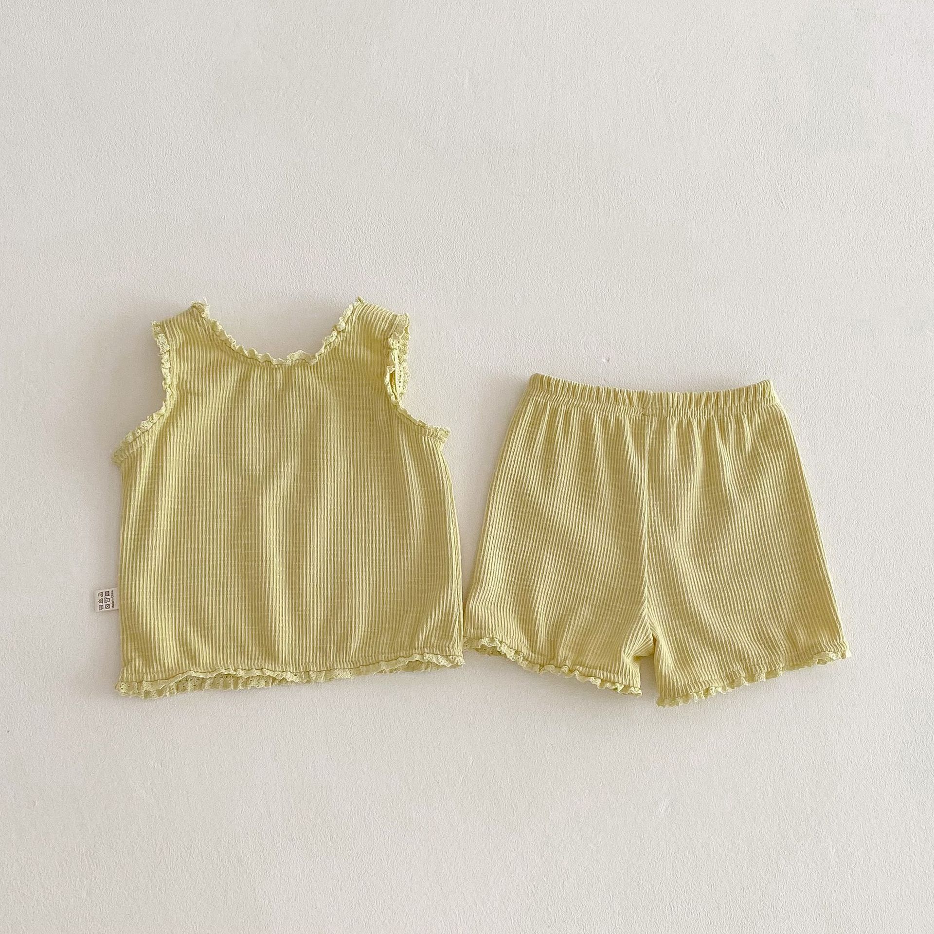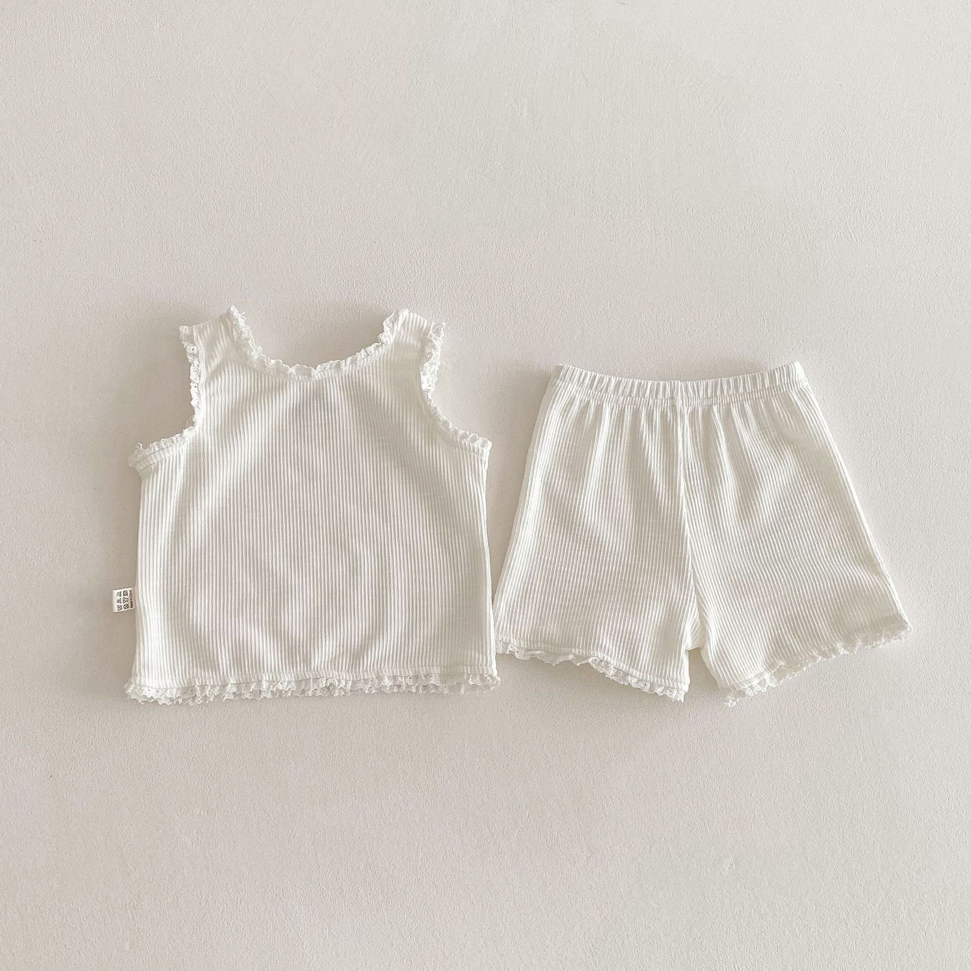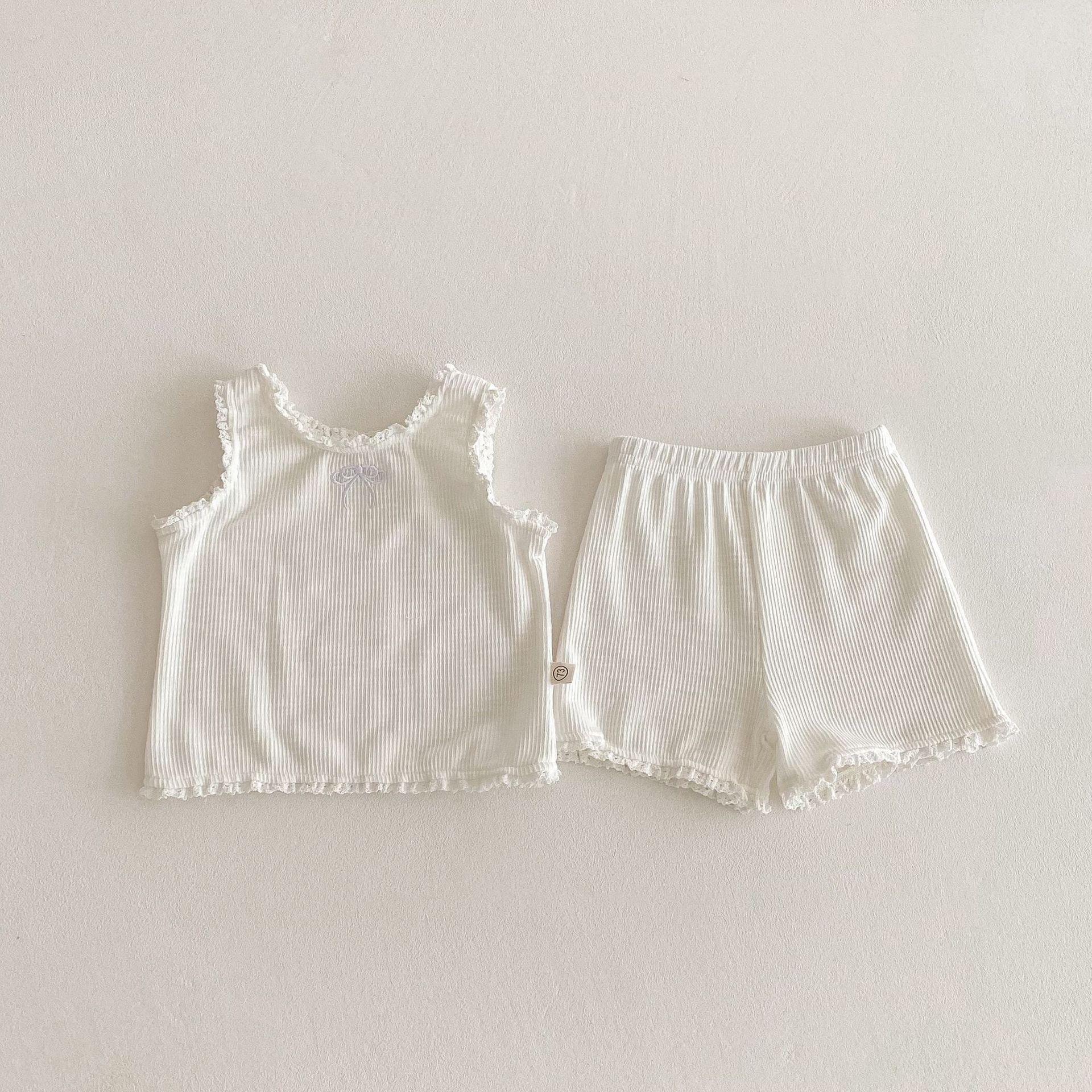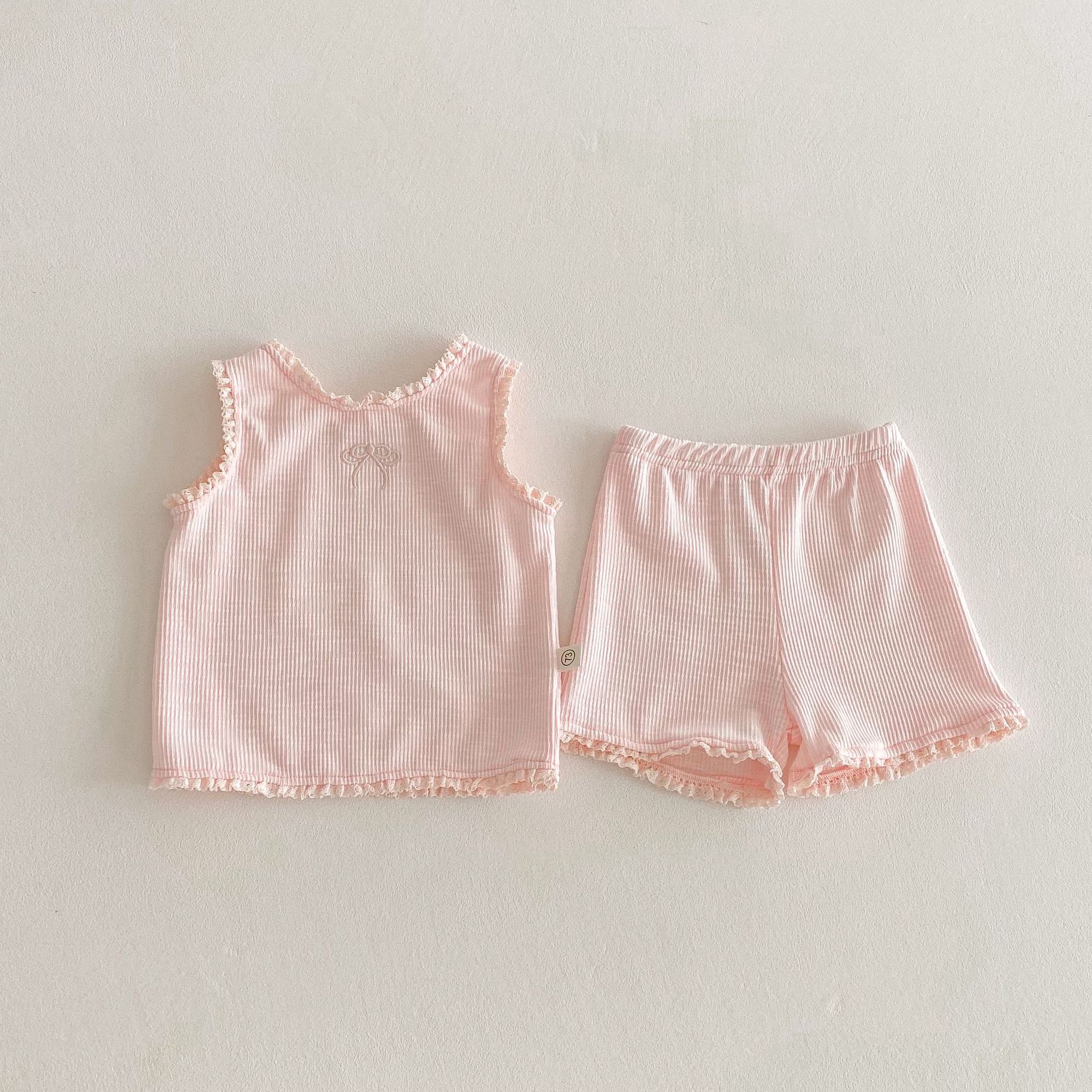 정장 한국어 스타일 ins 소녀 정장 민소매 탑 반바지 두 조각 아기 소년 여름 스타일 통기성 서양식 외출복