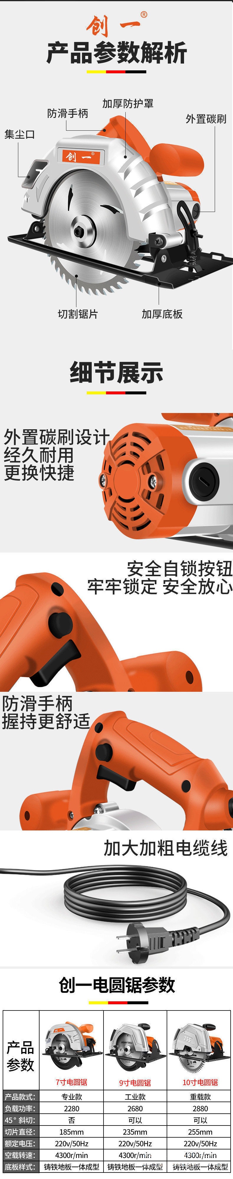 Chuangyi 전기 원형 톱 7/9/10 "전기 톱 목공 휴대용 톱 가정용 절삭 기계 테이블은 반전 원형 톱을 보았다