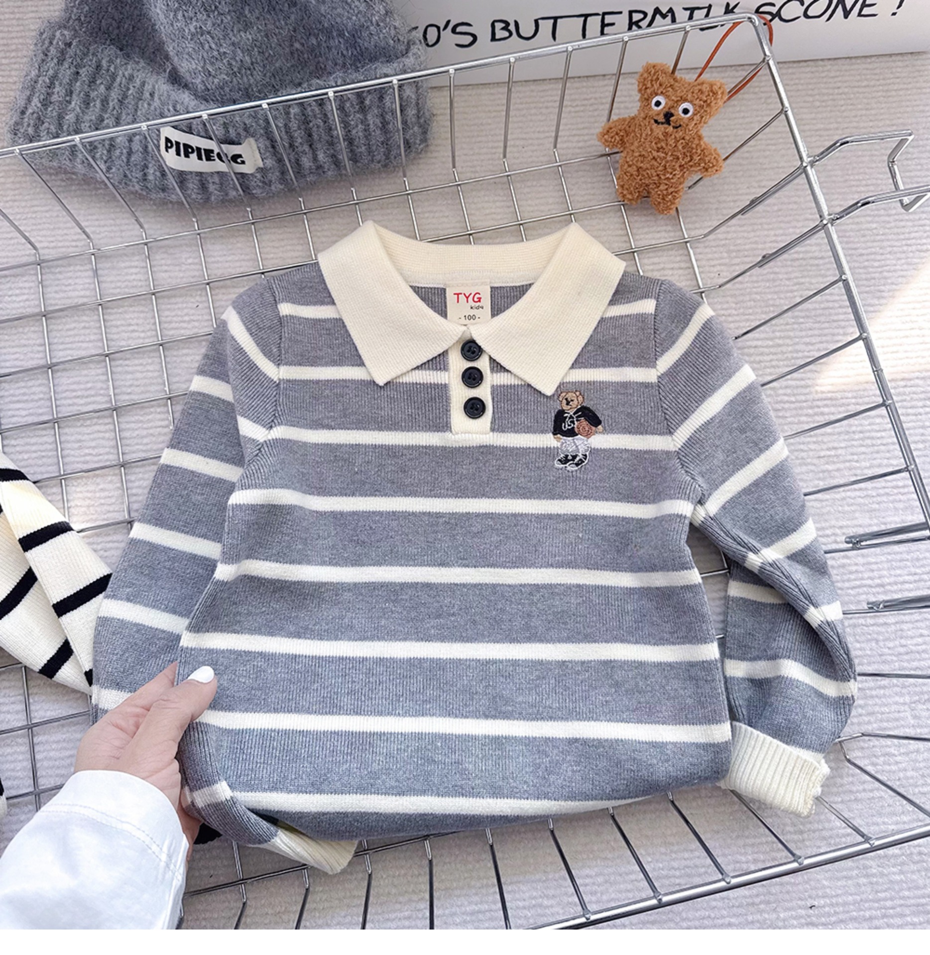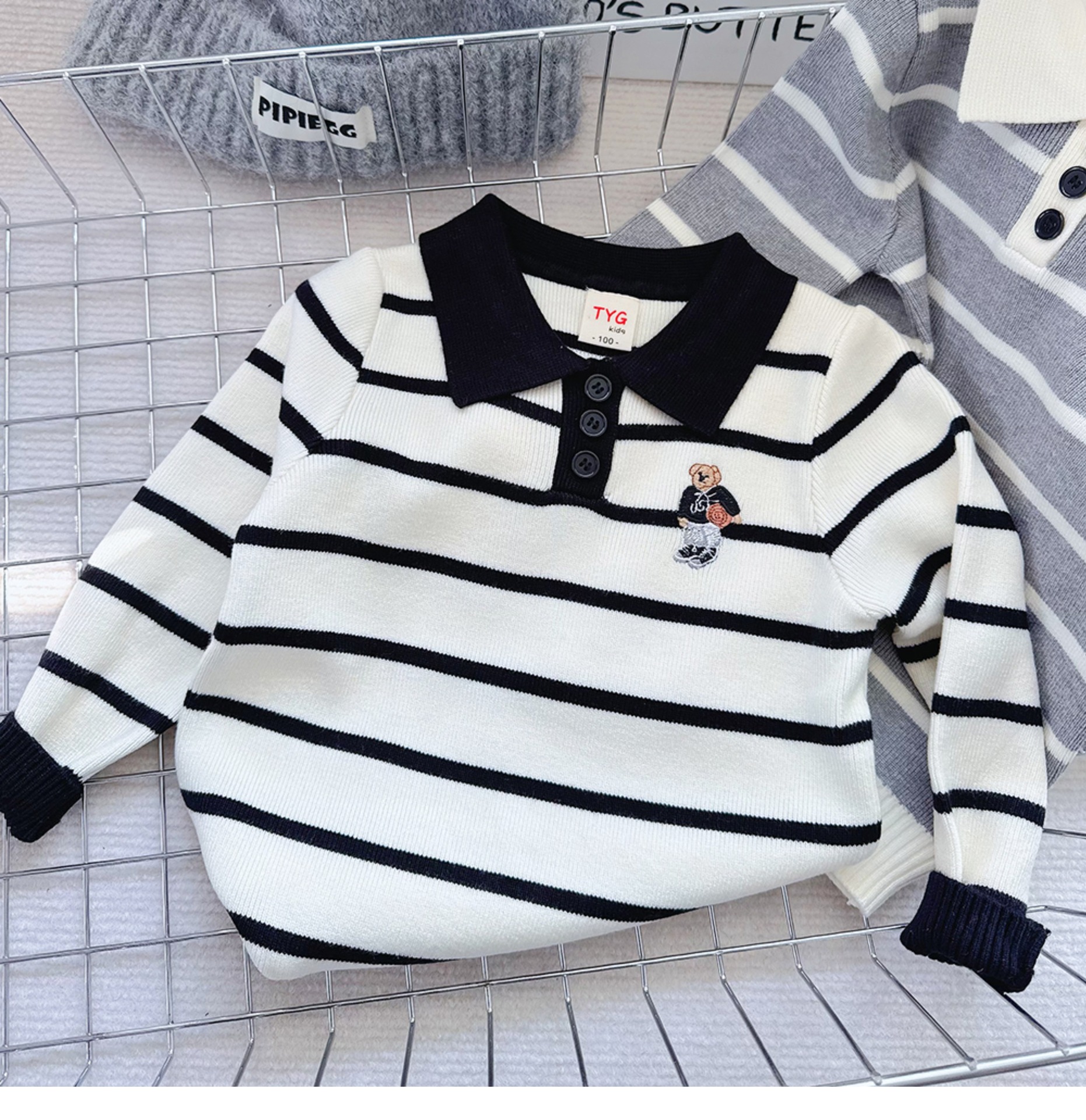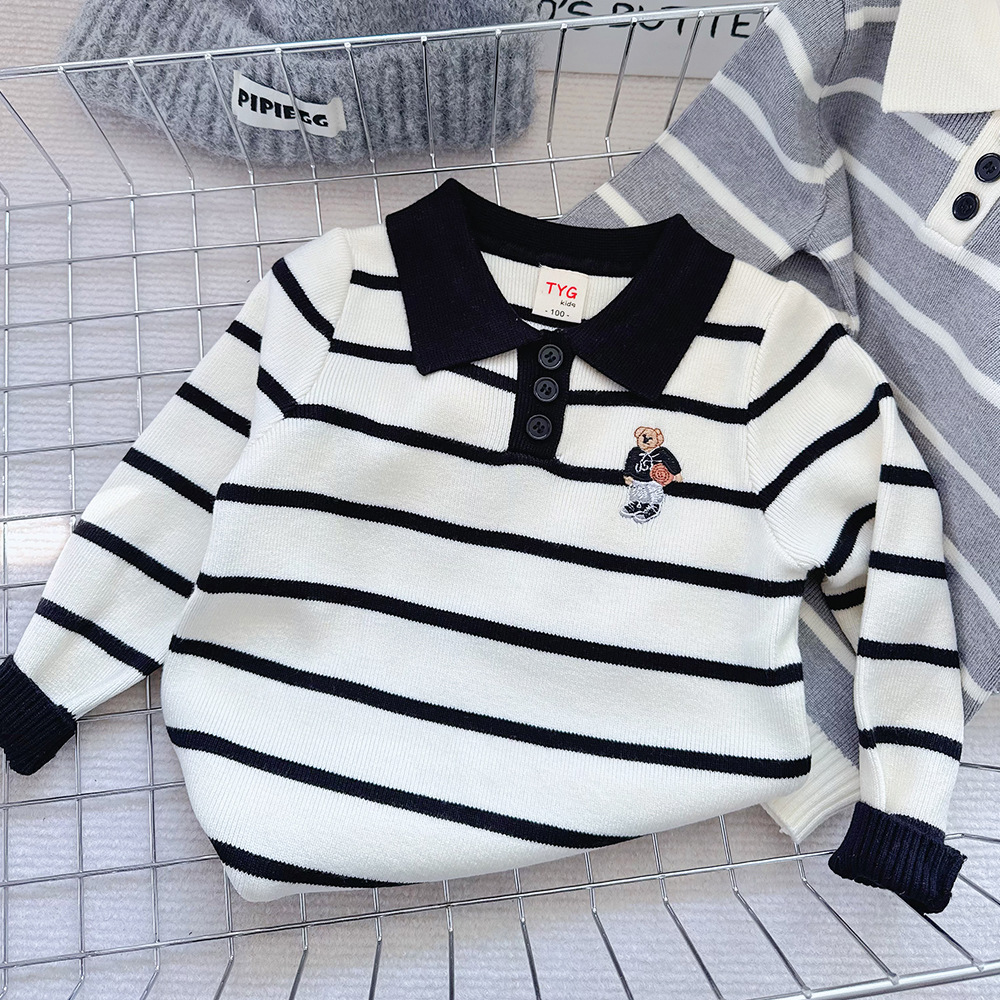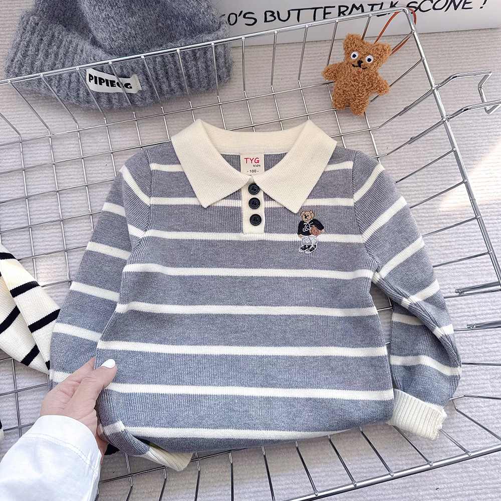 어린이 줄무늬 니트 스웨터 봄과 가을 새 소년의 레이저 줄무늬 만화베이스 셔츠 아기 소프트 탑