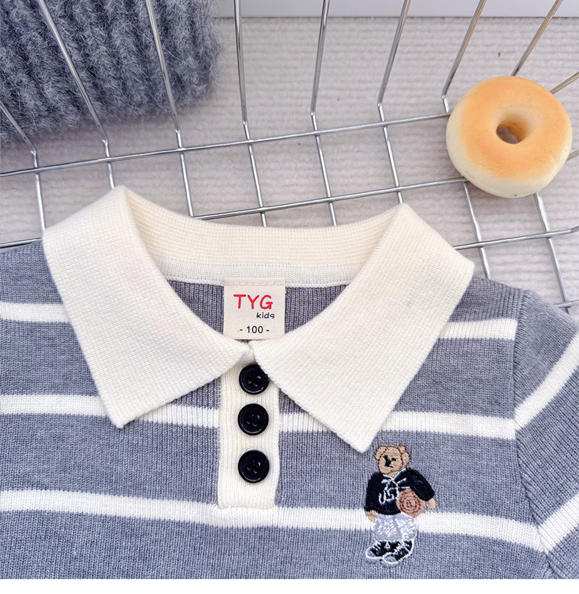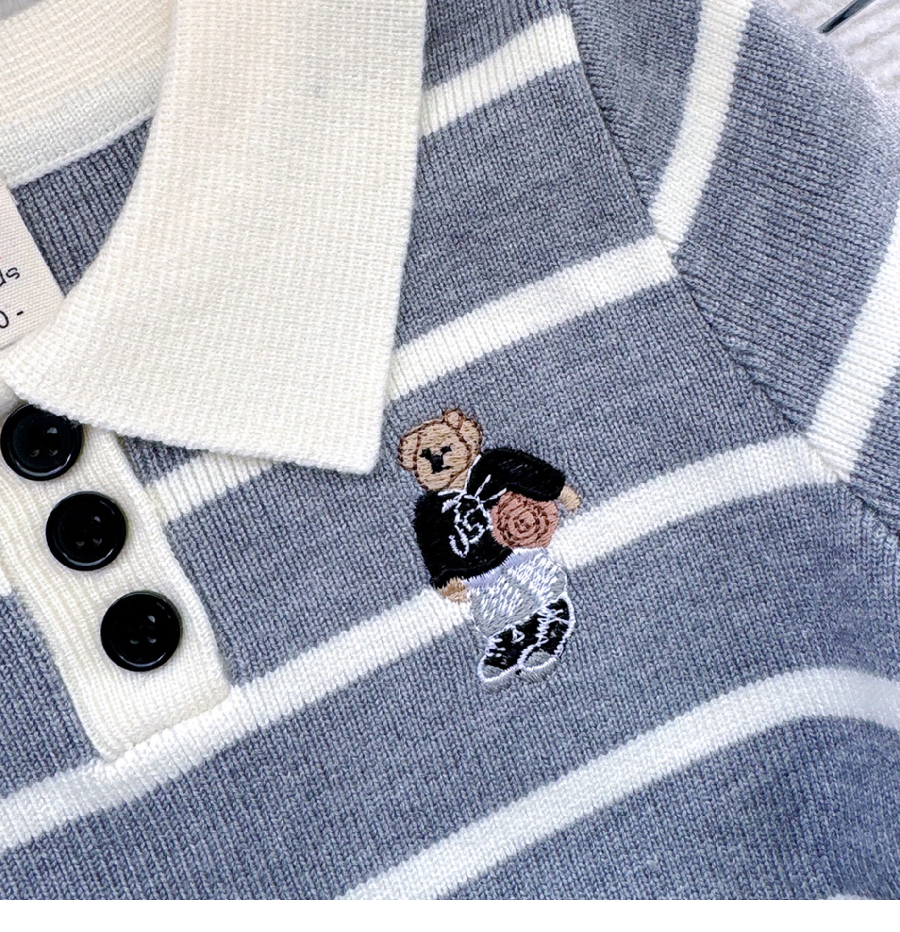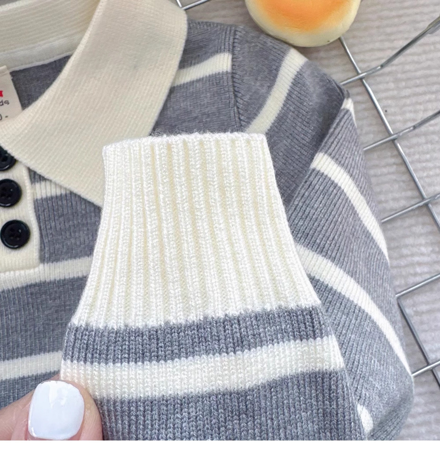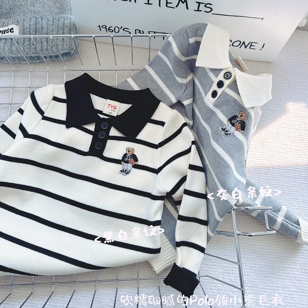 어린이 줄무늬 니트 스웨터 봄과 가을 새 소년의 레이저 줄무늬 만화베이스 셔츠 아기 소프트 탑