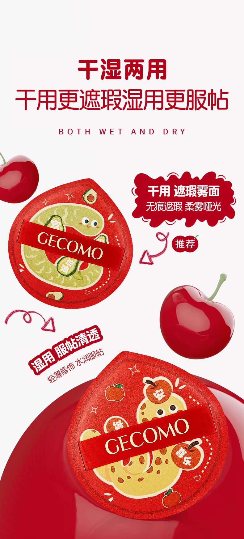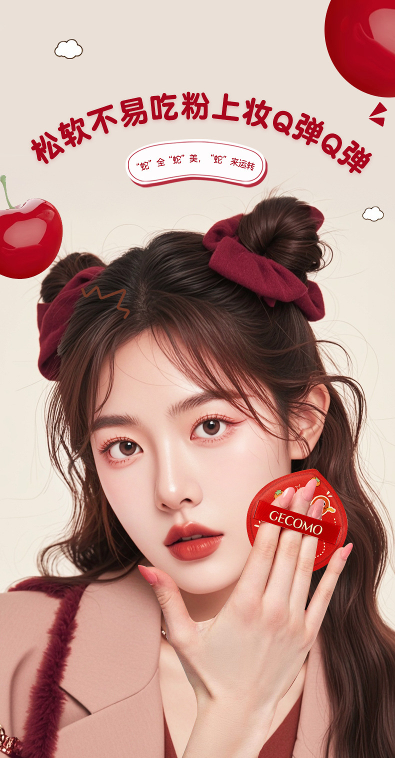 스네이크 마시멜로 파우더 퍼프의 Gemeng Year of the Dry and Wet Dual-use 부드럽고 피부 친화적 인 No Powder Q-Play 에어 쿠션 뷰티 에그스토어 가기