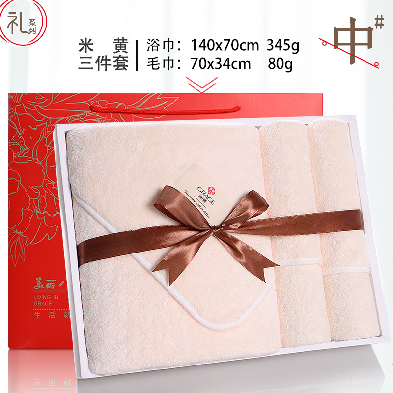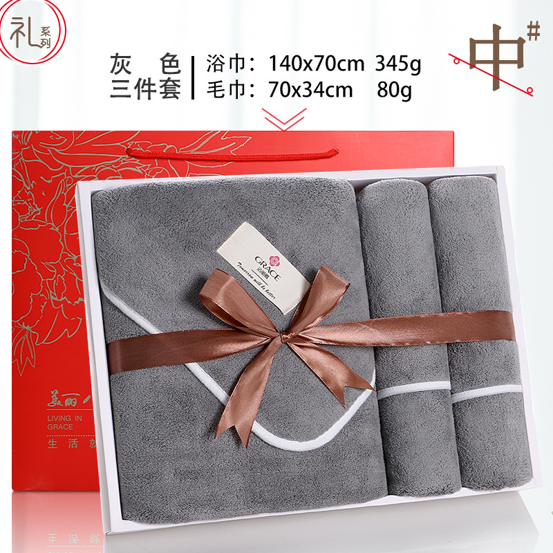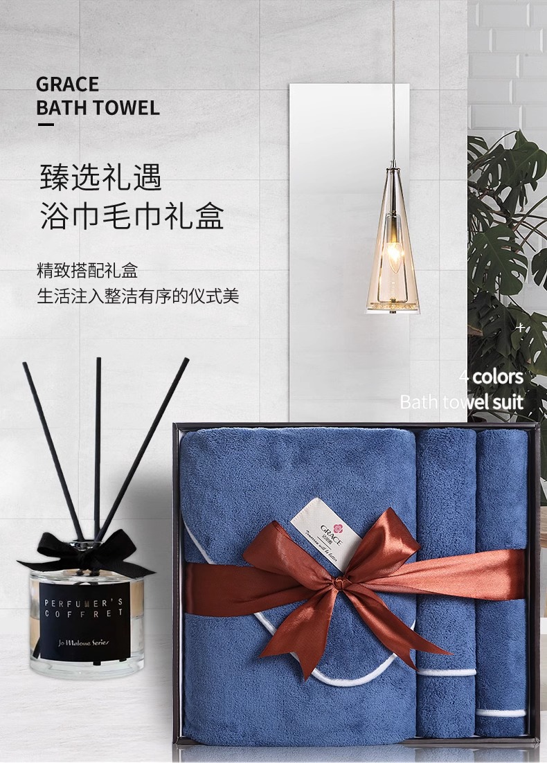 Jielia 목욕 타월 선물 상자 3 조각 세트 두꺼운 슈퍼 흡수 웨딩 선물 축제 비즈니스 복지 동반 선물스토어 가기
