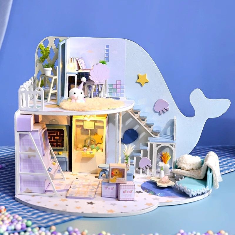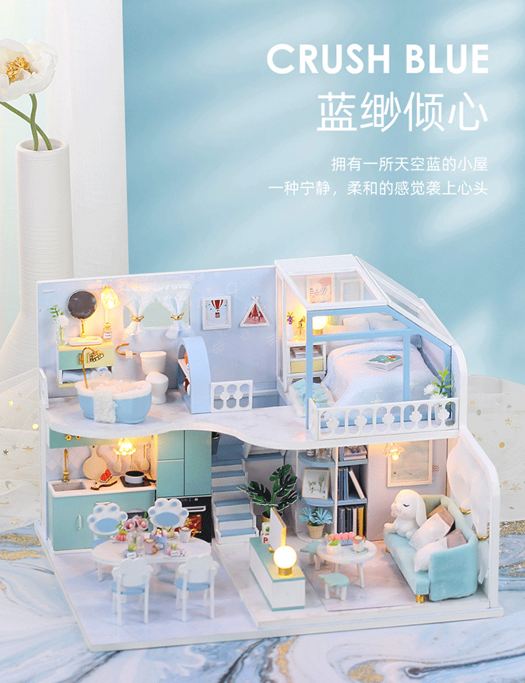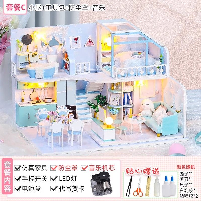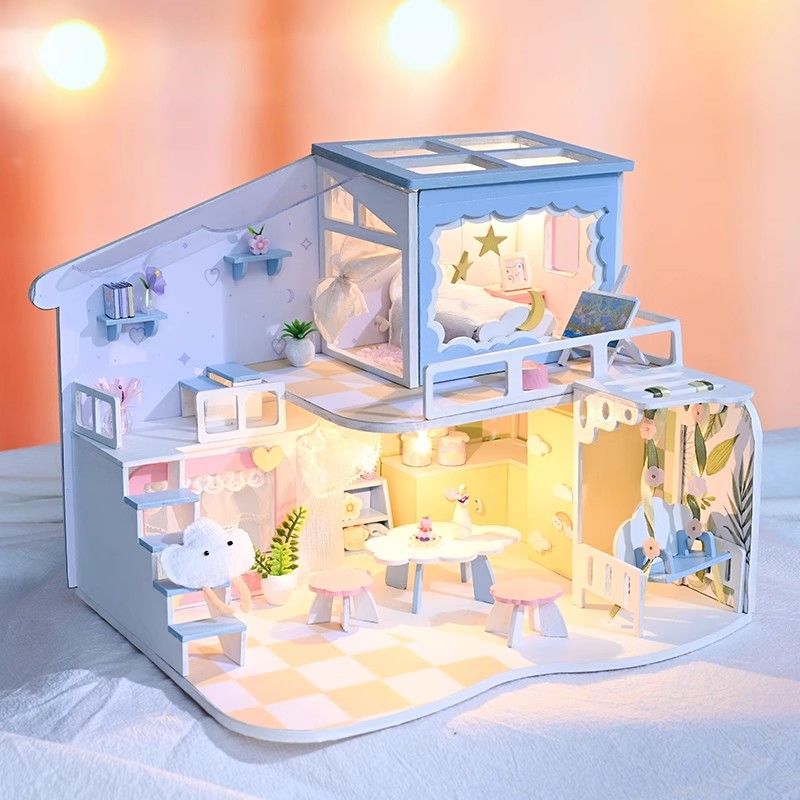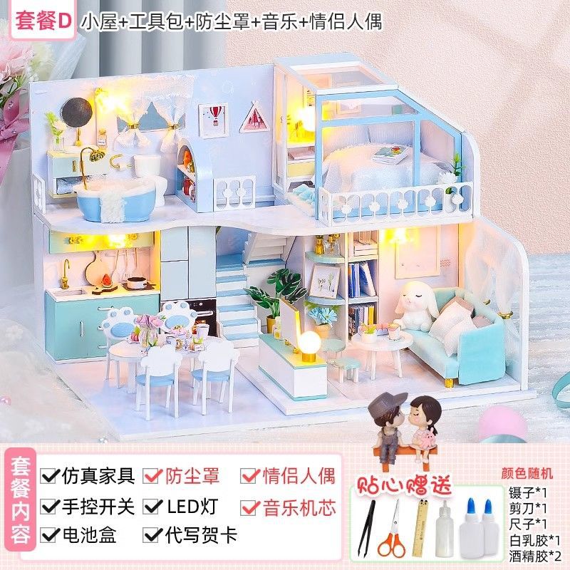 장면 집 건물 블록 스테레오 퍼즐 장난감 작은 DIY 오두막 조립 빌라 하우스 모델 수제 미니