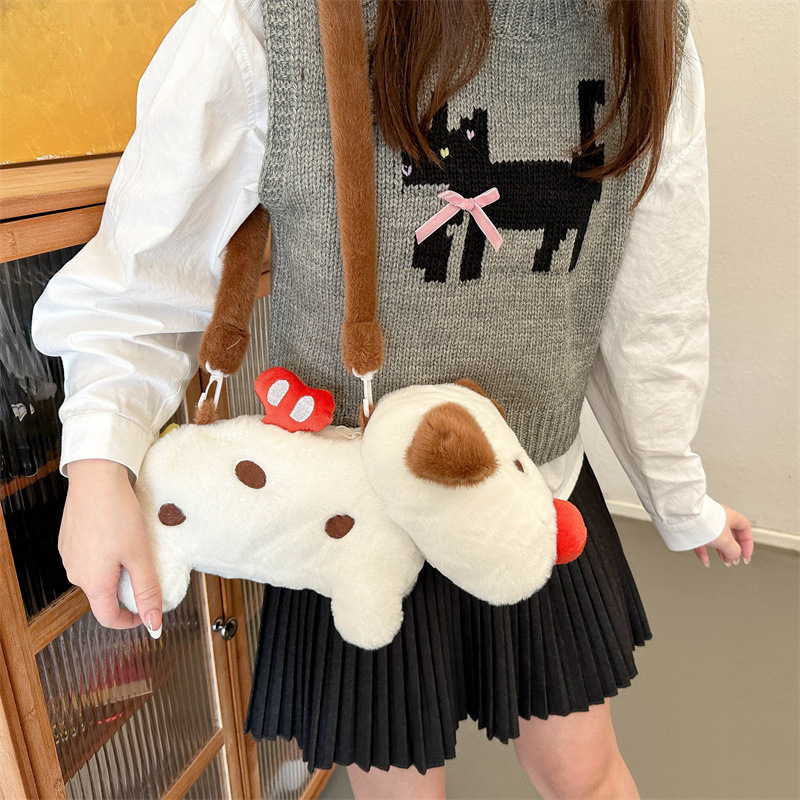 메신저 가방 단일 어깨 귀여운 만화 봉제 인형 핸드백 강아지 인형 선물 귀여운 wrested 강아지 슬렁 IN